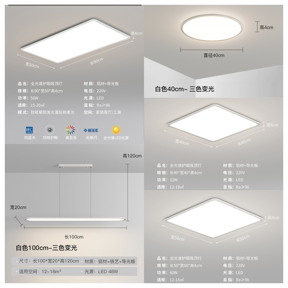 WJQ-8809现代简约全光谱吸顶灯套餐