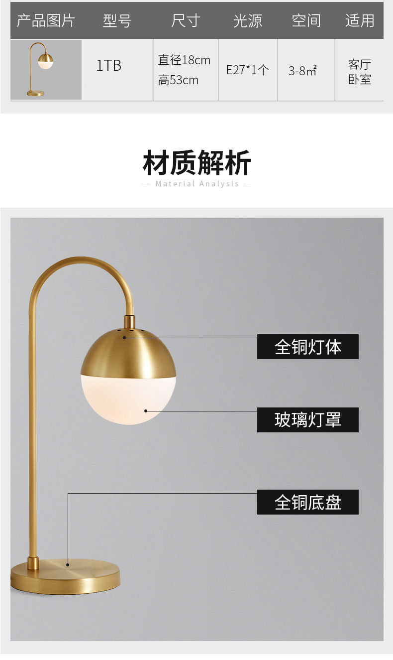 铜 玻璃 书房 现代简约 台灯 731-1T