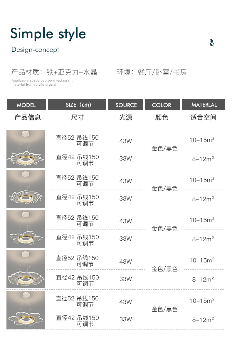 铁艺 亚克力 餐厅 铝 吊灯 现代吊灯 ML8807