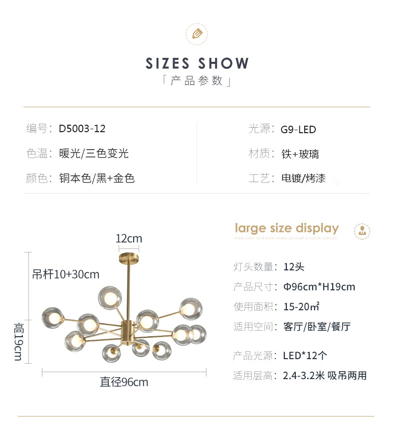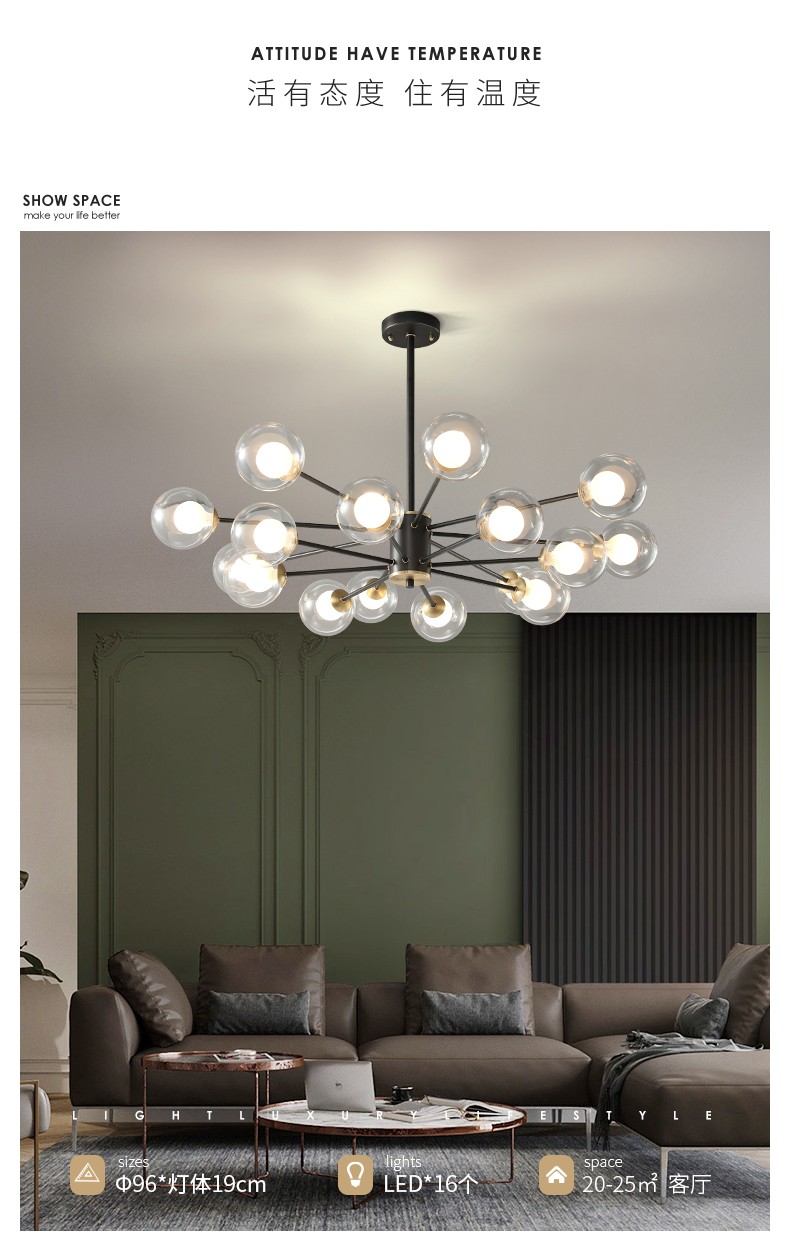 022铁艺球中球客厅卧室灯轻奢吊灯022-1336