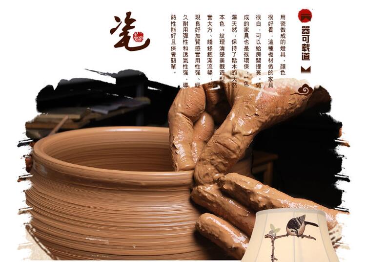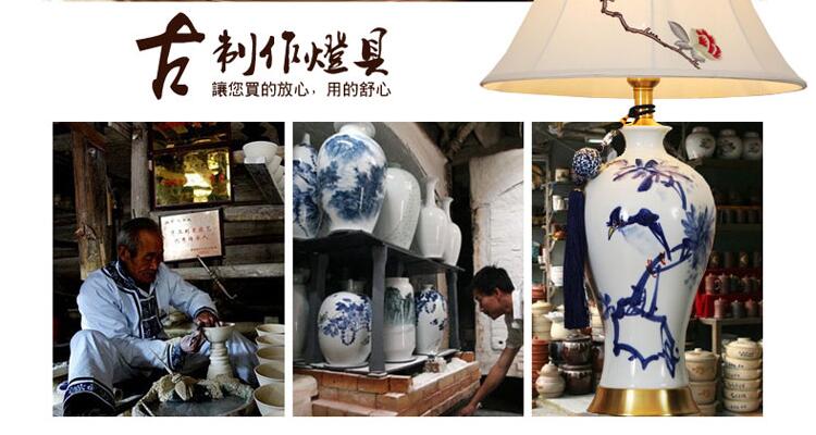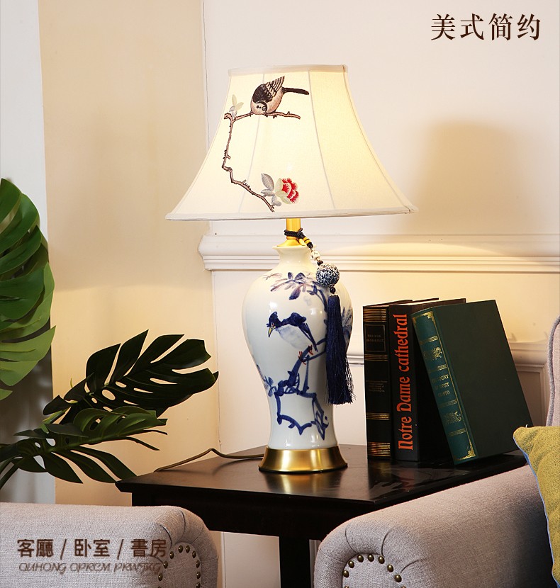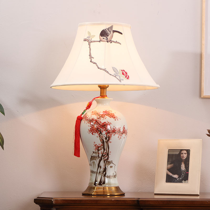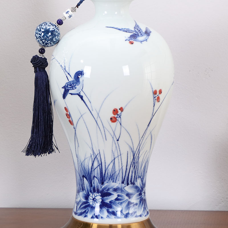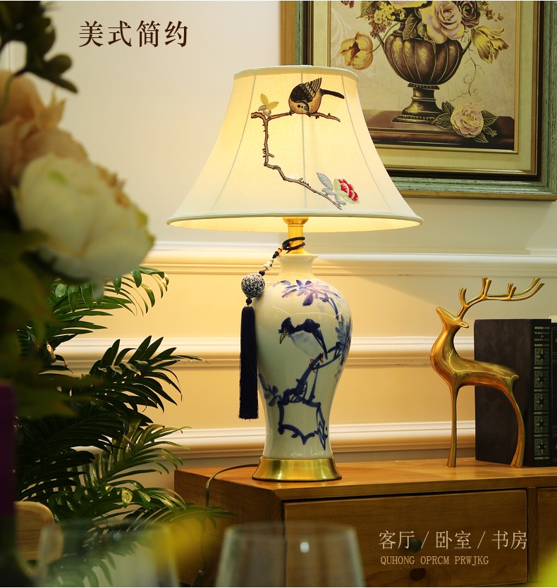 T3132A小鸟刺绣灯罩手绘青花瓷陶瓷台灯