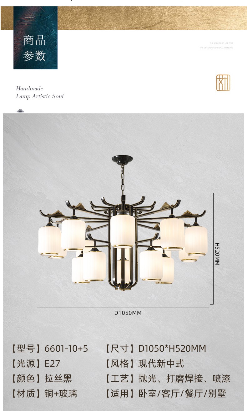 128全铜新中式吊灯128-6601系列