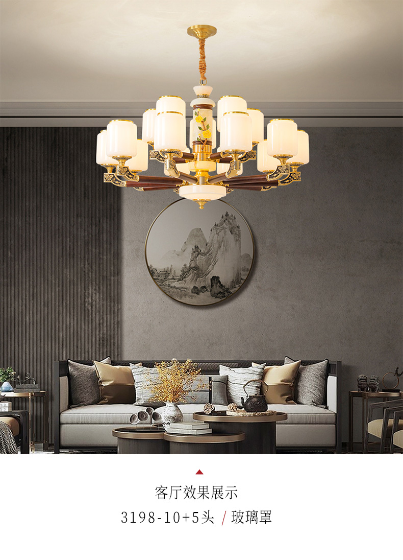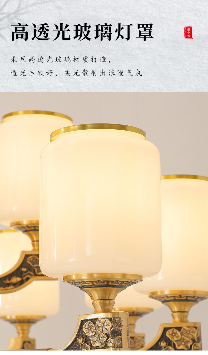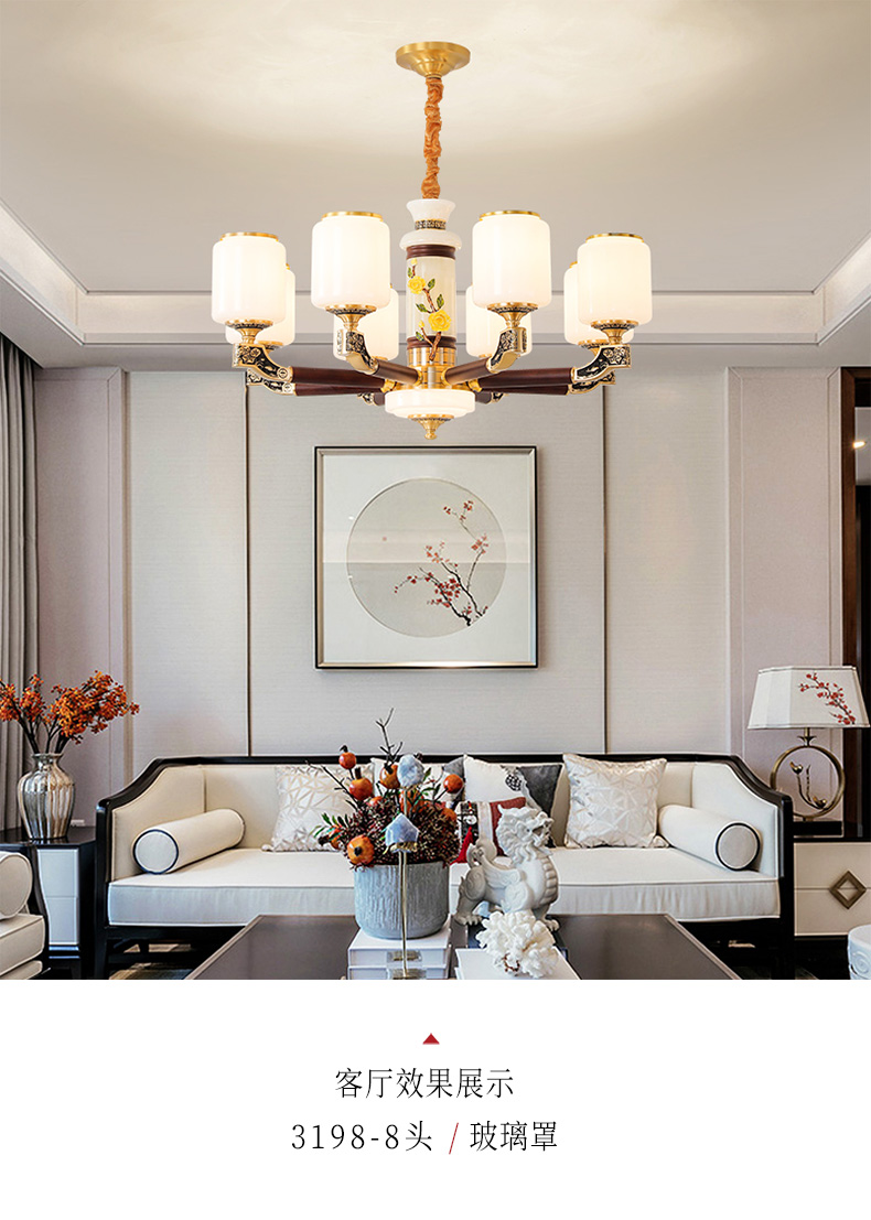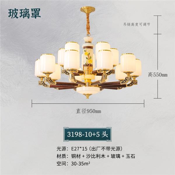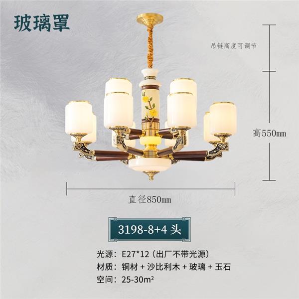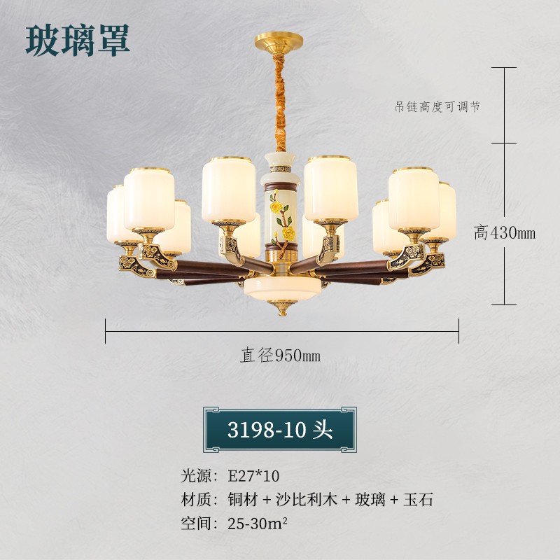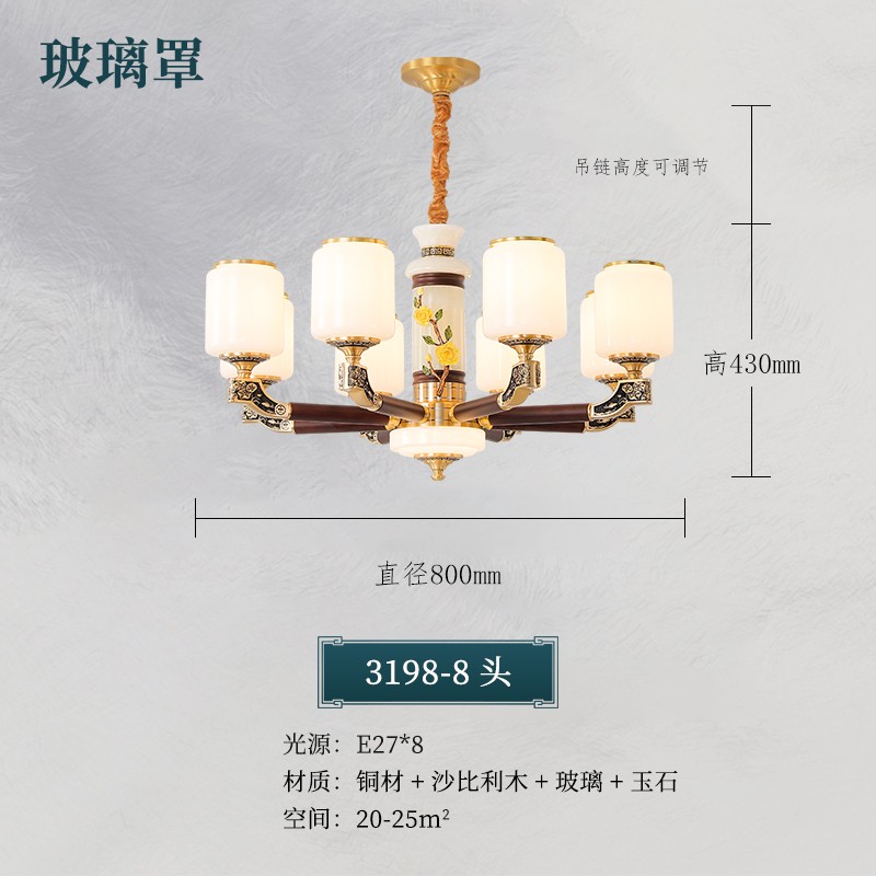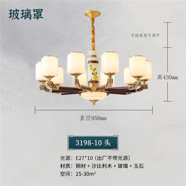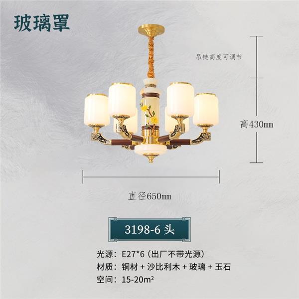 004新中式全铜吊灯004-3198玻璃罩
