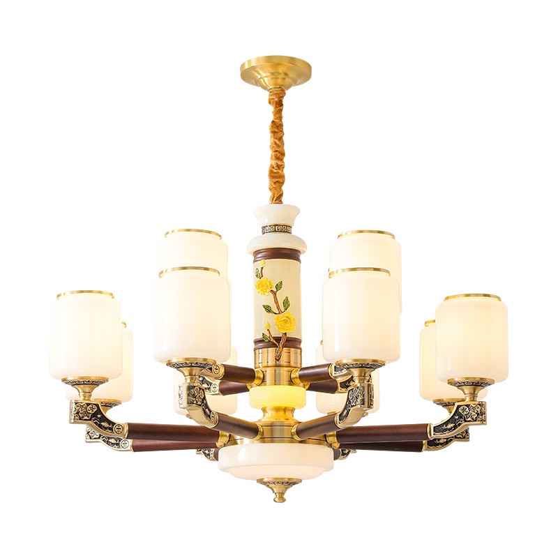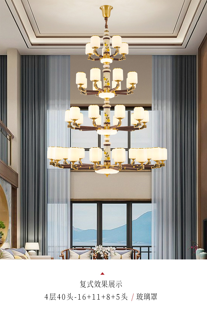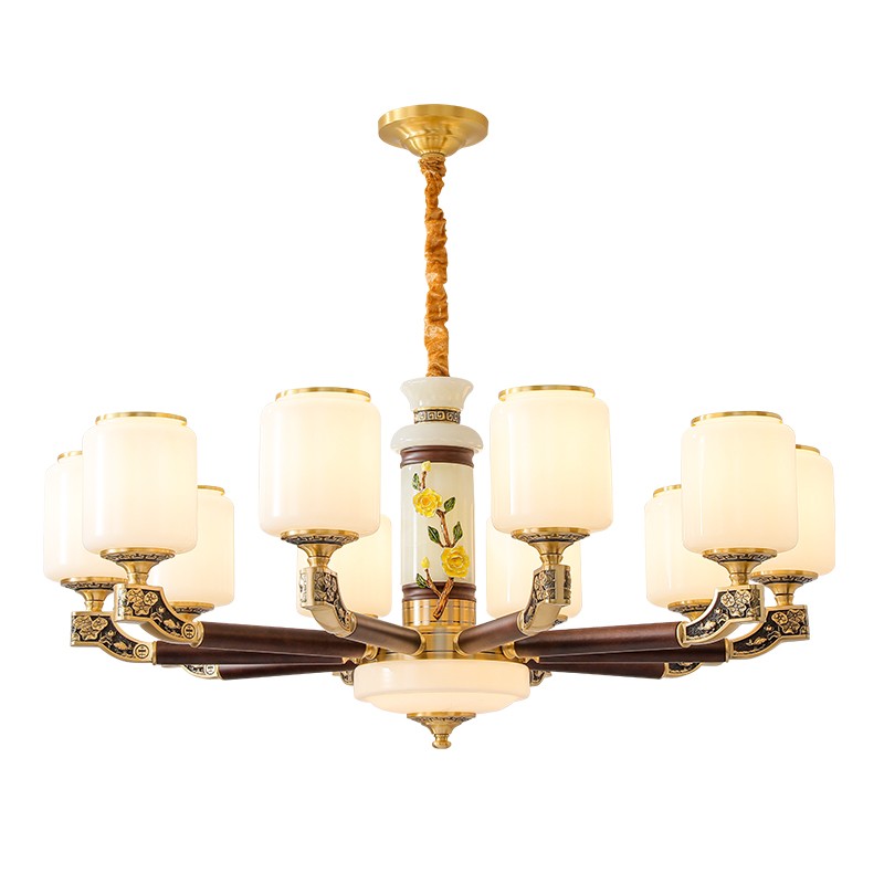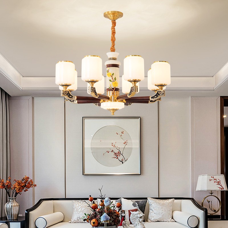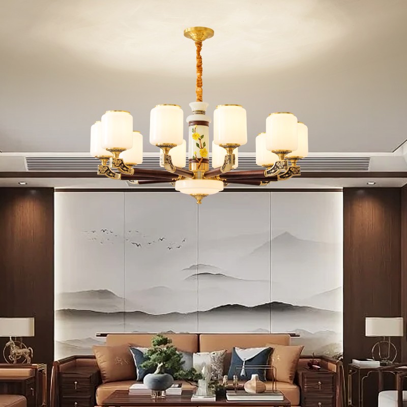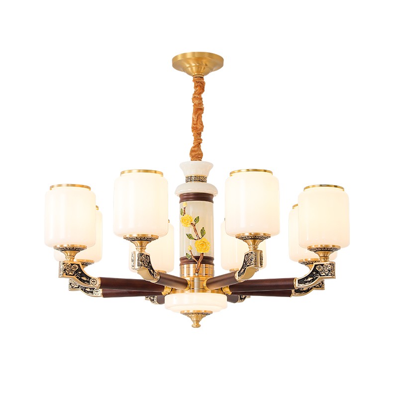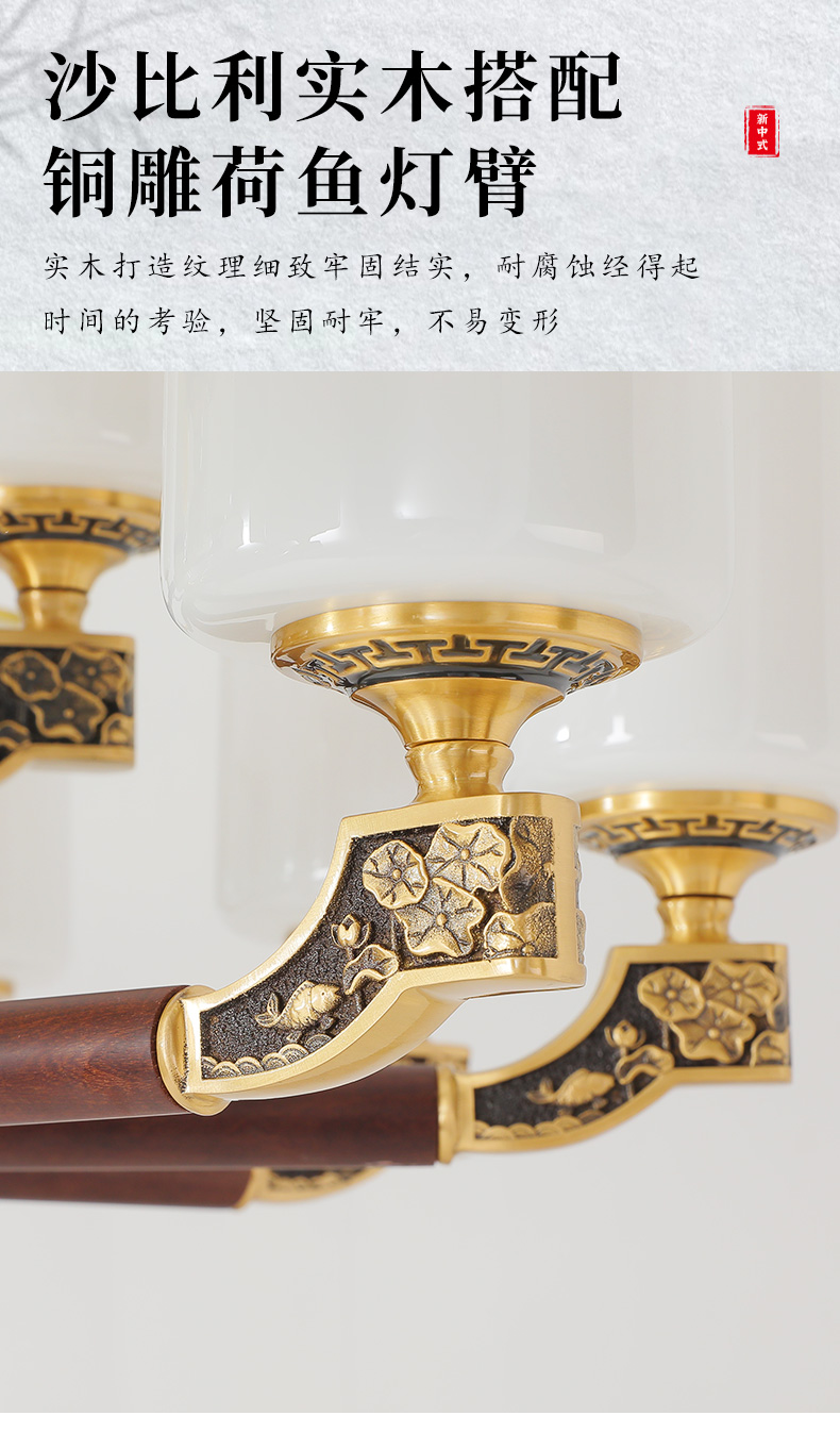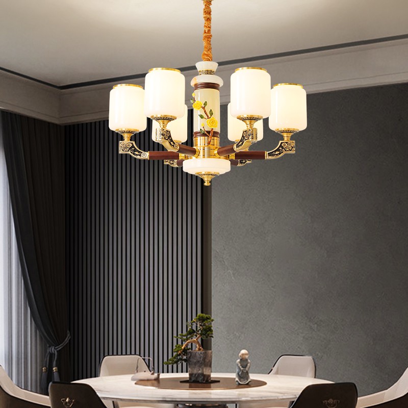 004新中式全铜吊灯004-3198玻璃罩