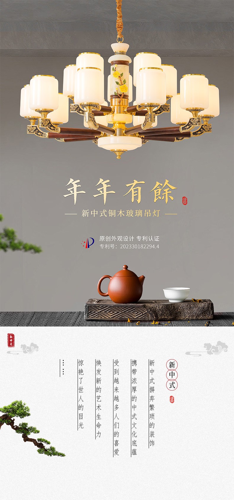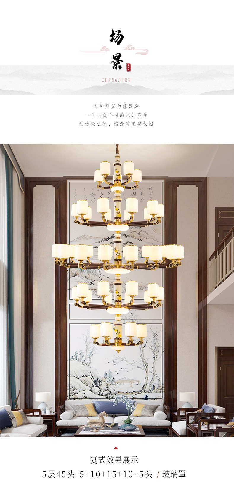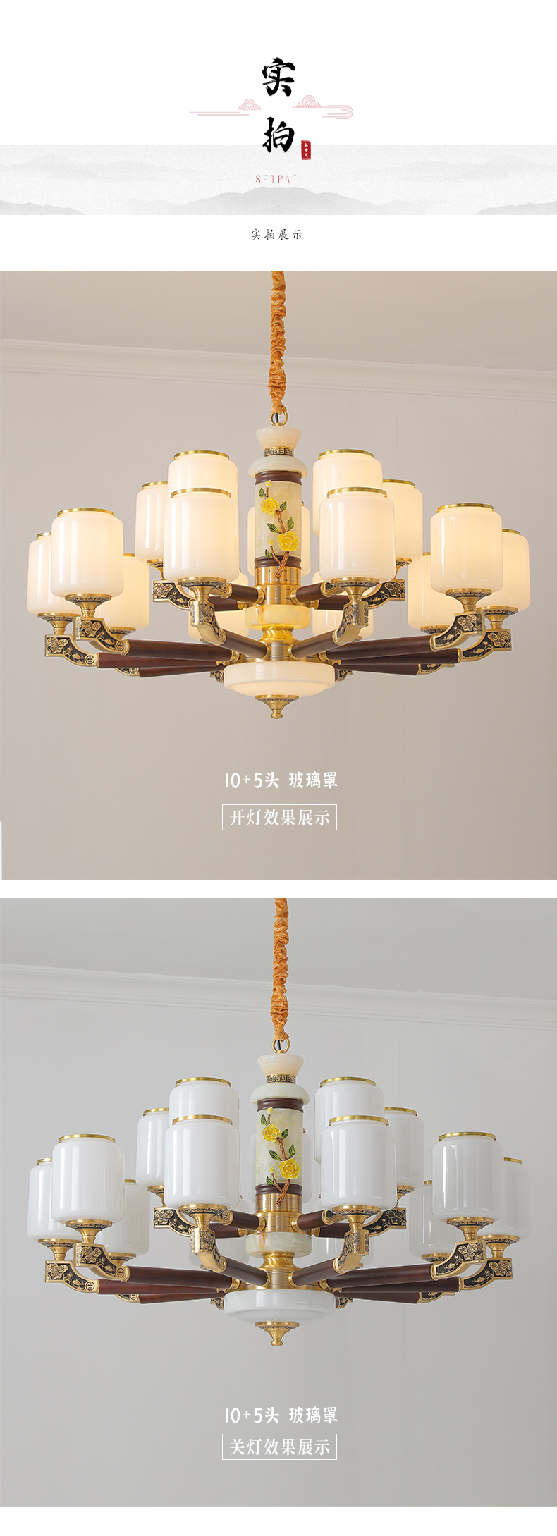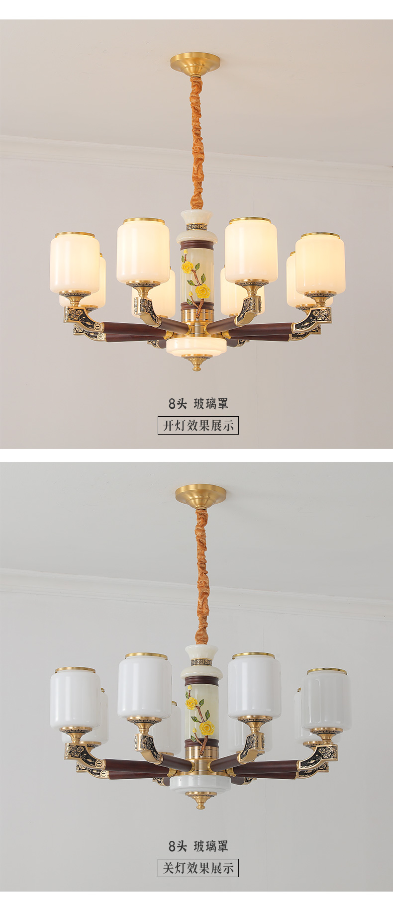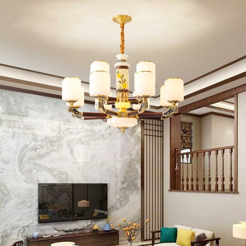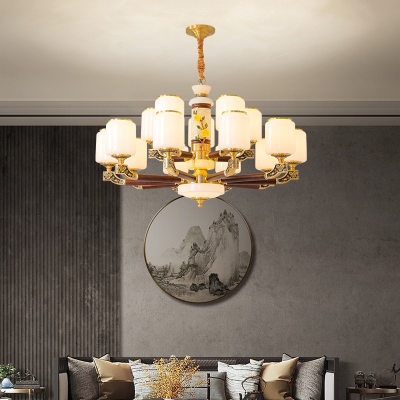 004新中式全铜吊灯004-3198玻璃罩