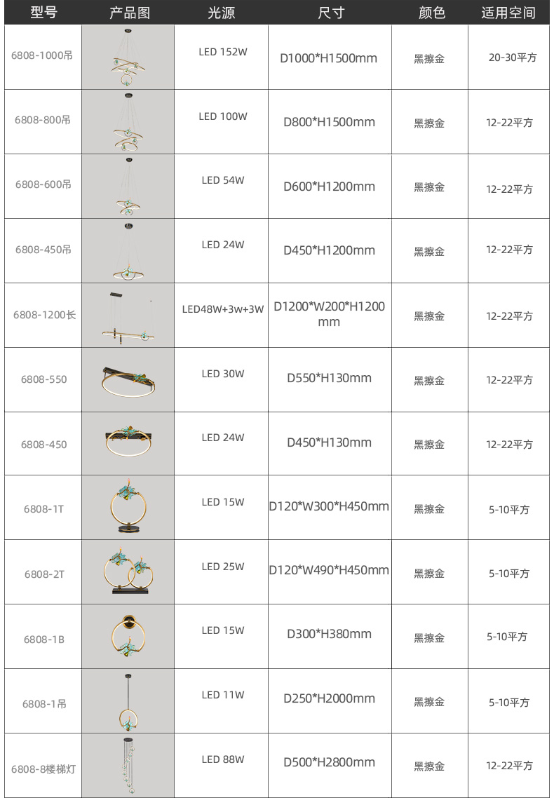 128全铜新中式吊灯128-6808系列