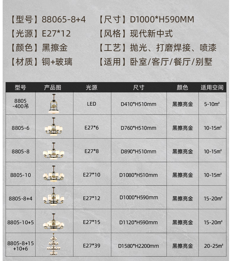 128全铜新中式吊灯128-88065系列