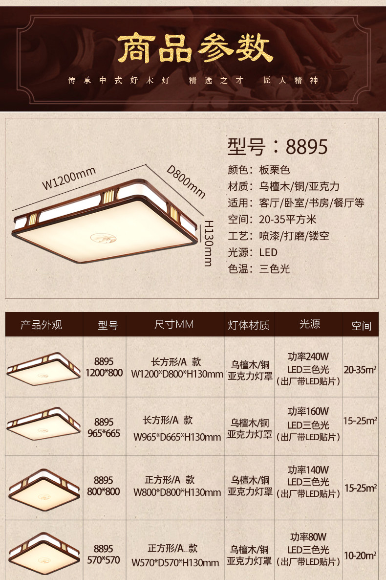 012中式木艺客厅吸顶灯012-8895-A款