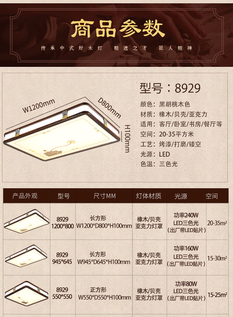 012中式木艺客厅吸顶灯012-8929
