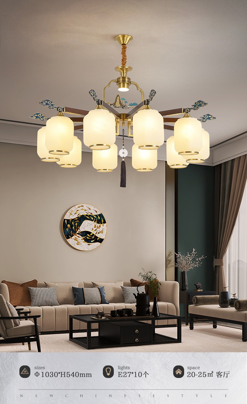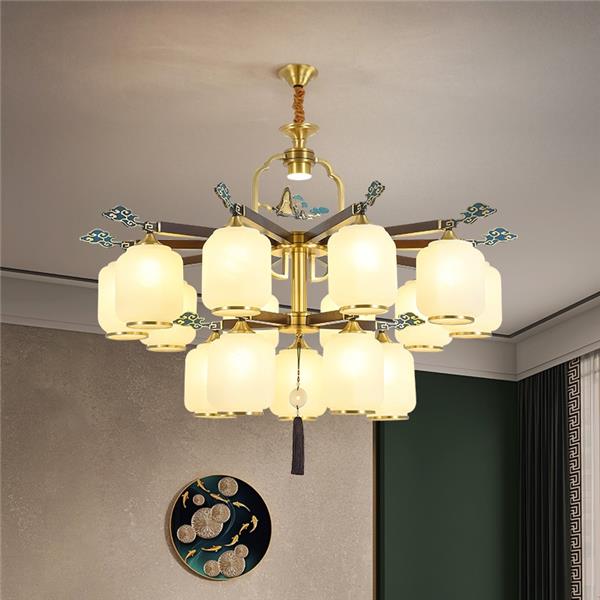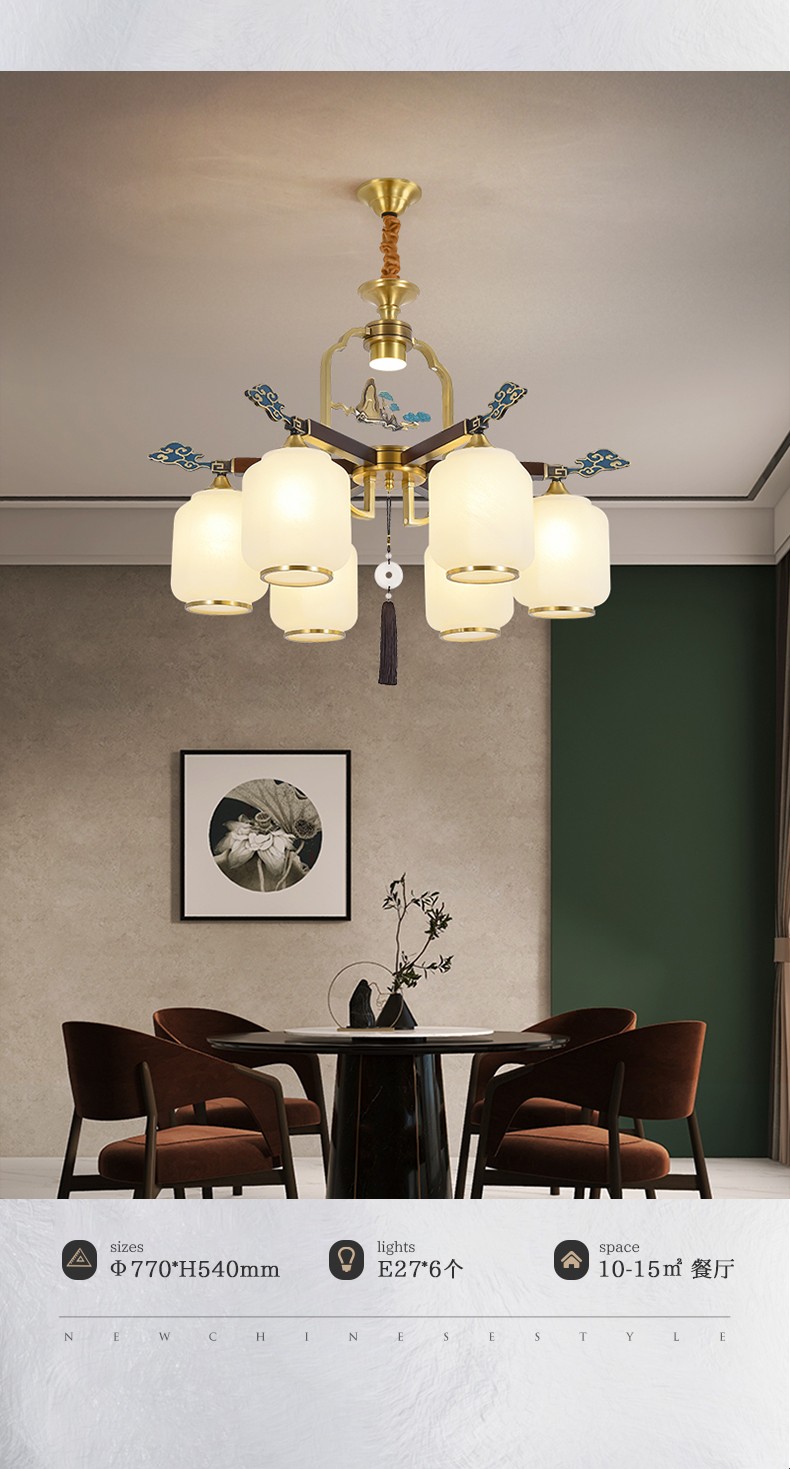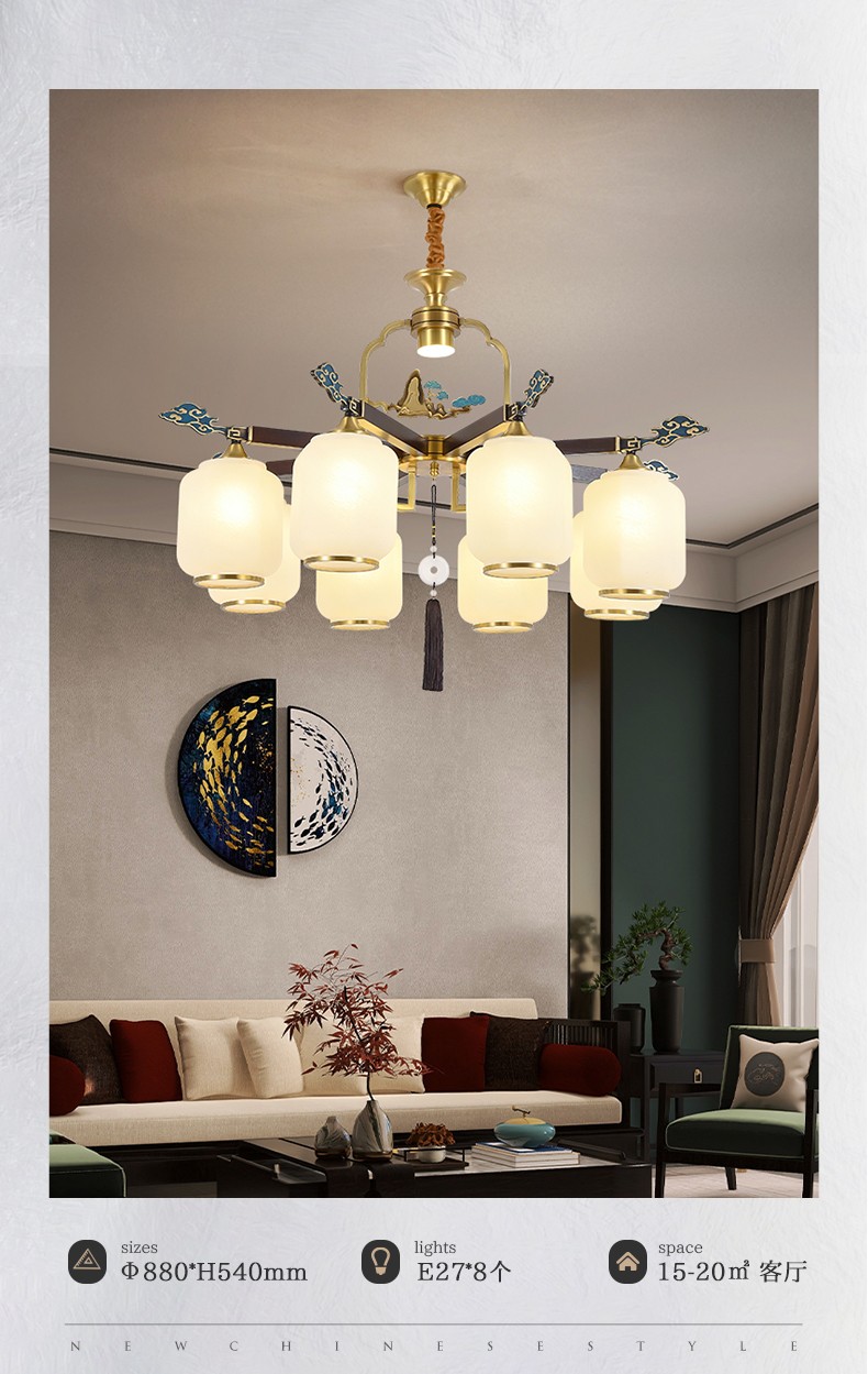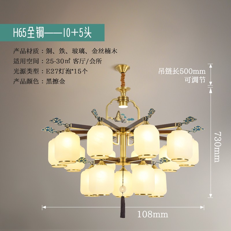 新中式全铜吊灯T7136系列全铜客厅灯简约卧室餐厅灯现代酒店别墅工程中国风灯具