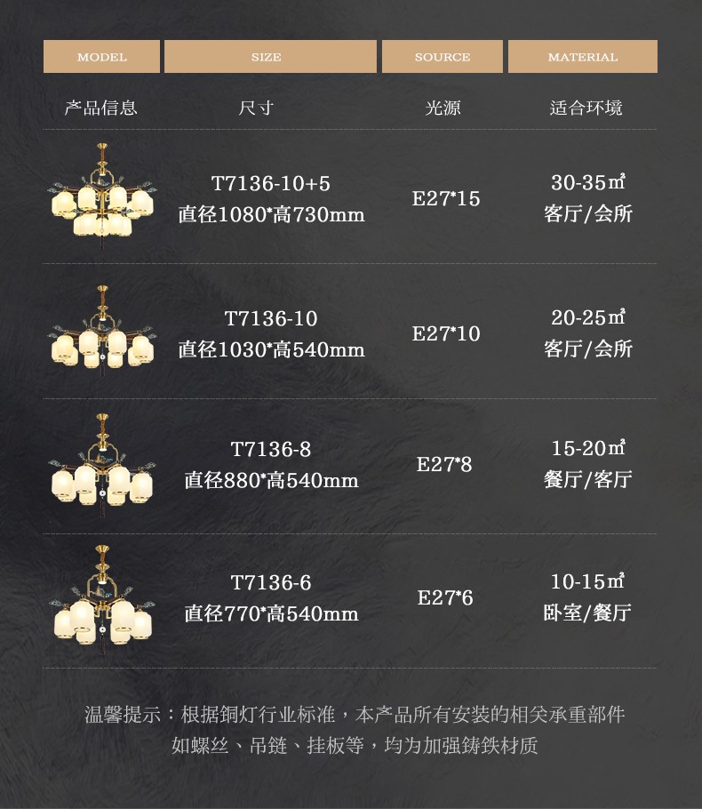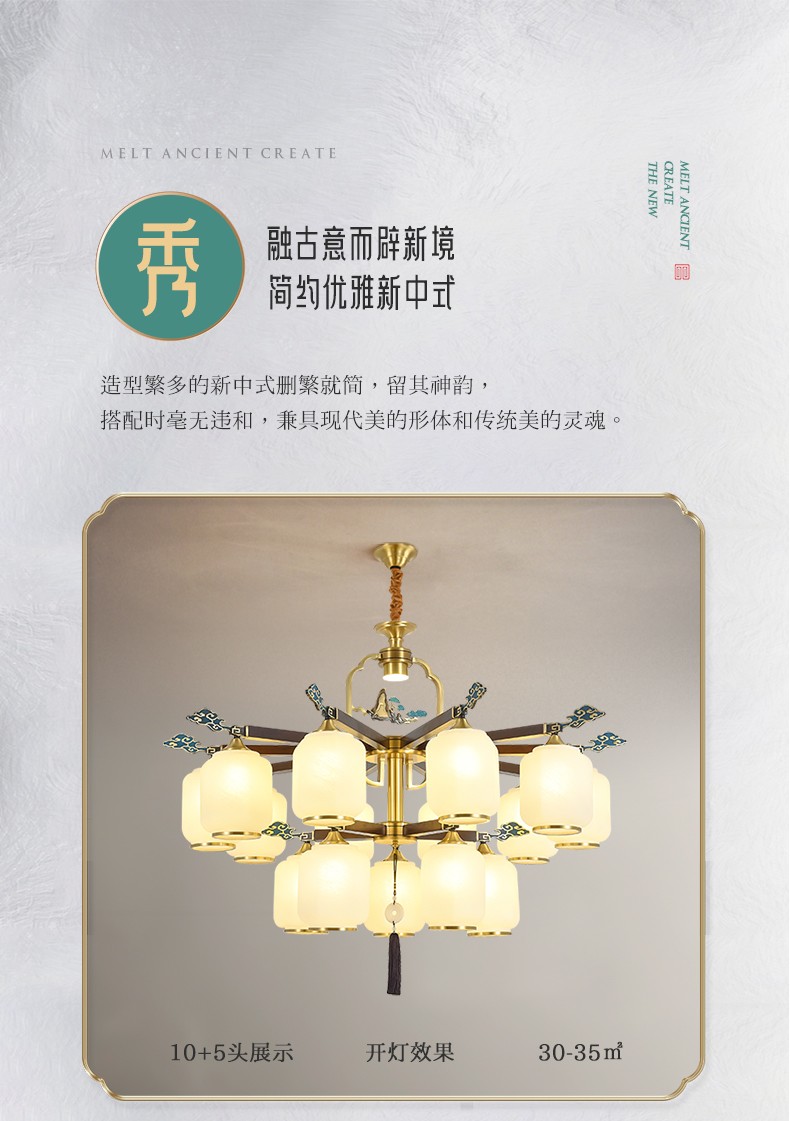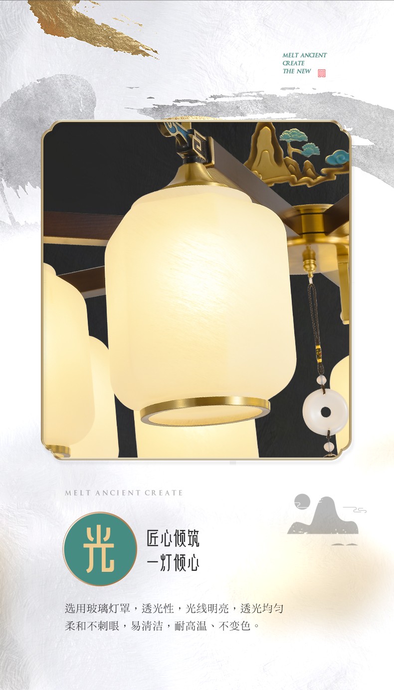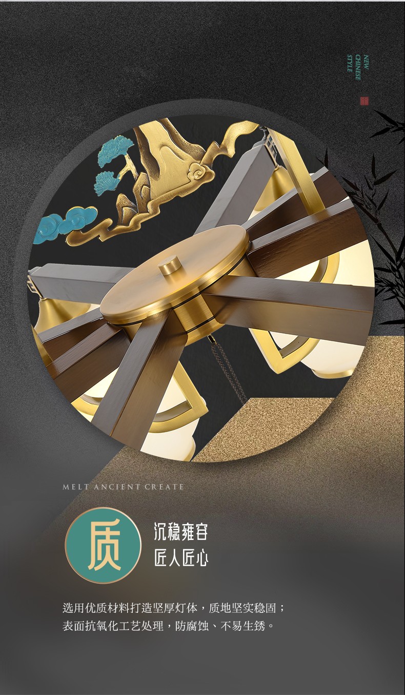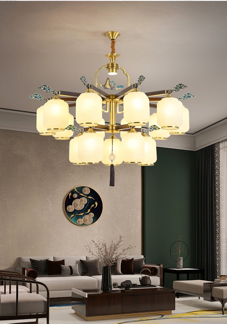 新中式全铜吊灯T7136系列全铜客厅灯简约卧室餐厅灯现代酒店别墅工程中国风灯具
