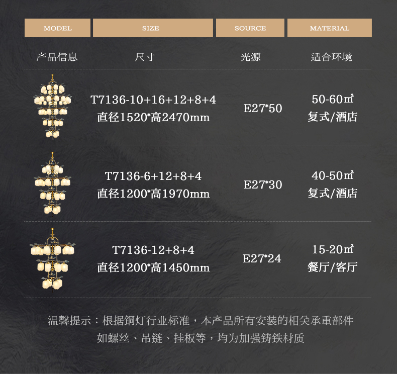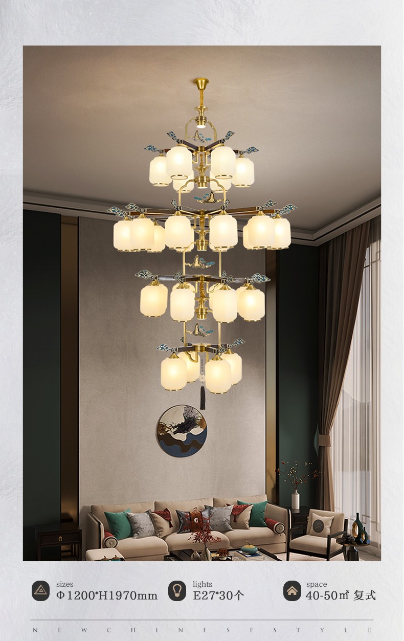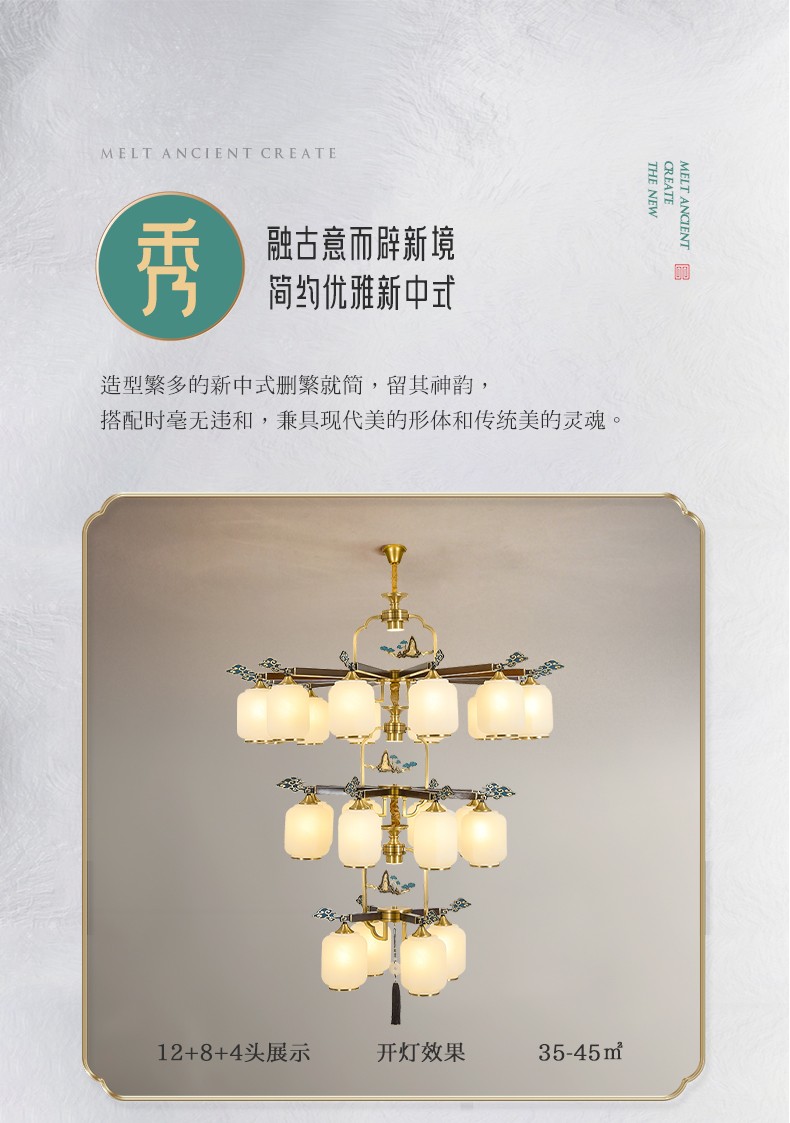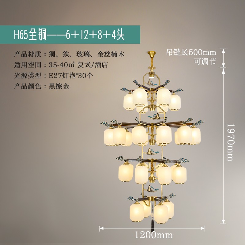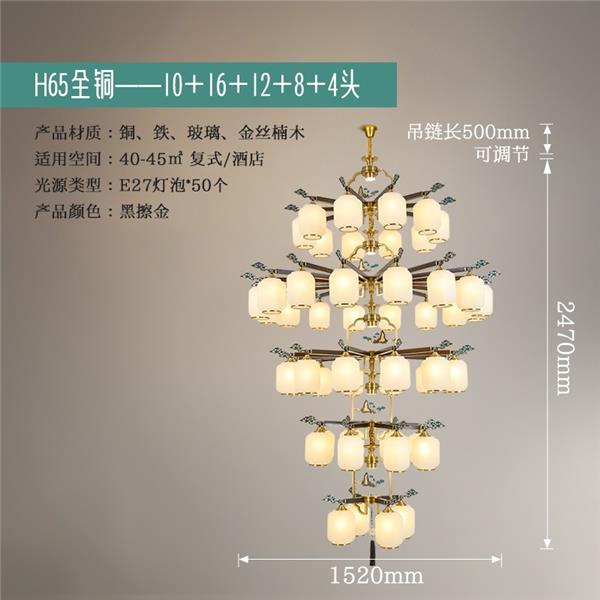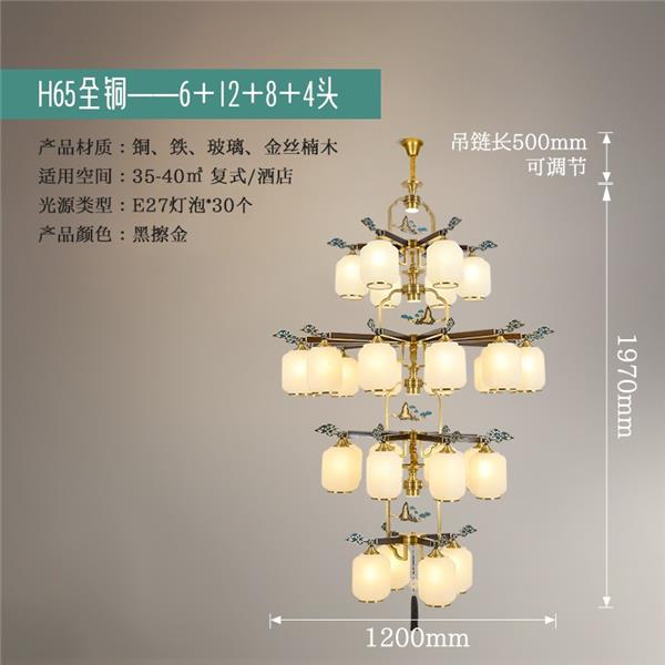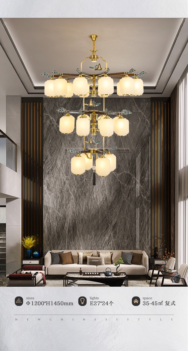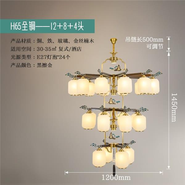 新中式全铜吊灯T7136大灯系列全铜客厅灯简约卧室餐厅灯现代酒店别墅工程中国风灯具