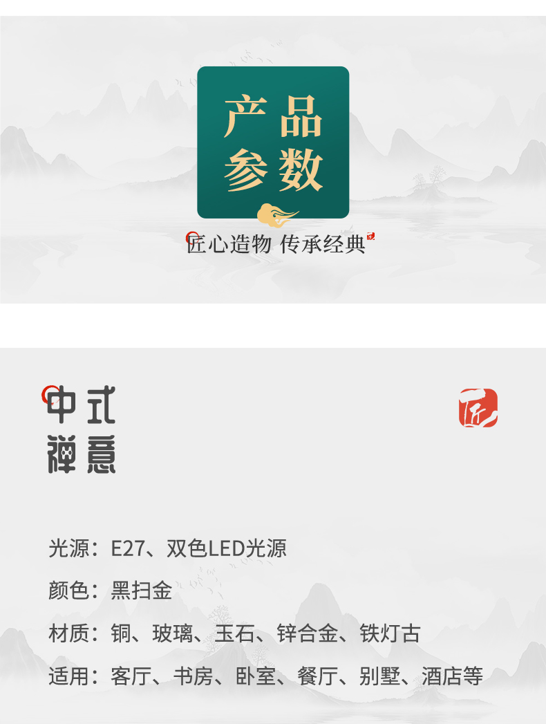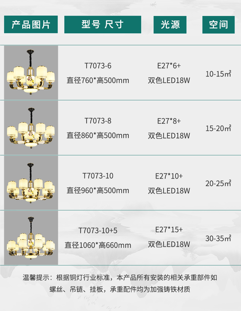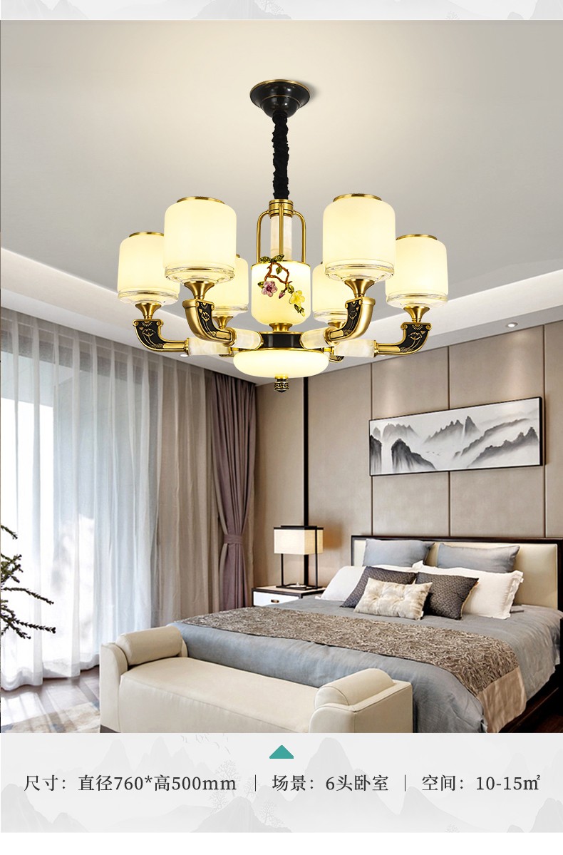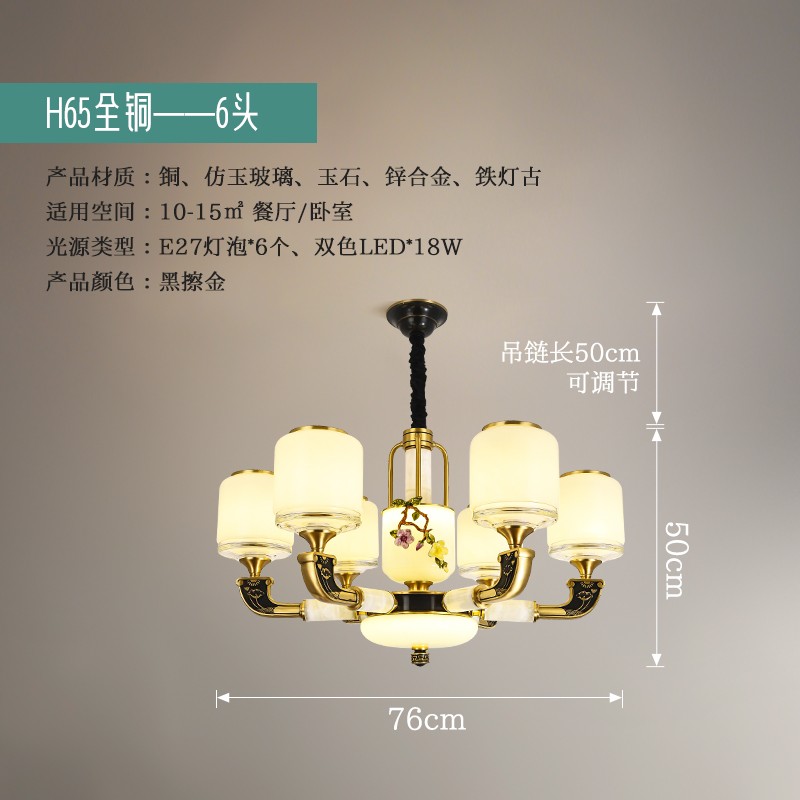 新中式全铜吊灯T7073系列全铜客厅灯简约客厅卧室餐厅灯现代酒店别墅工程中国风灯具