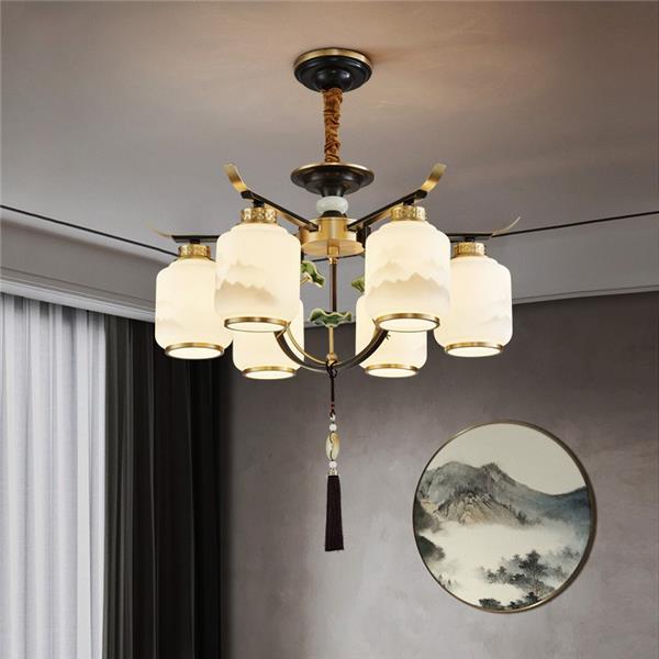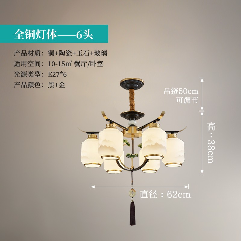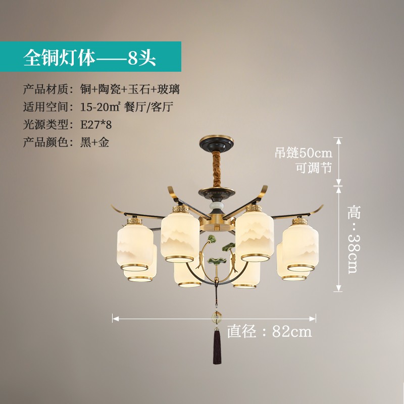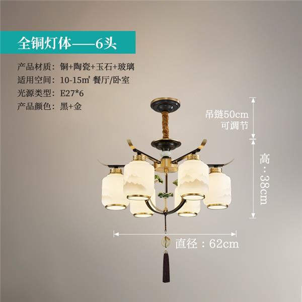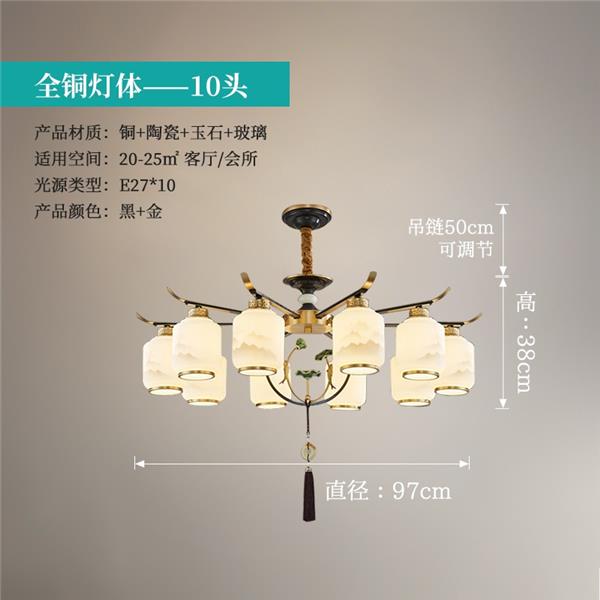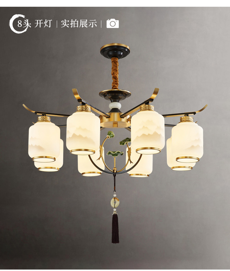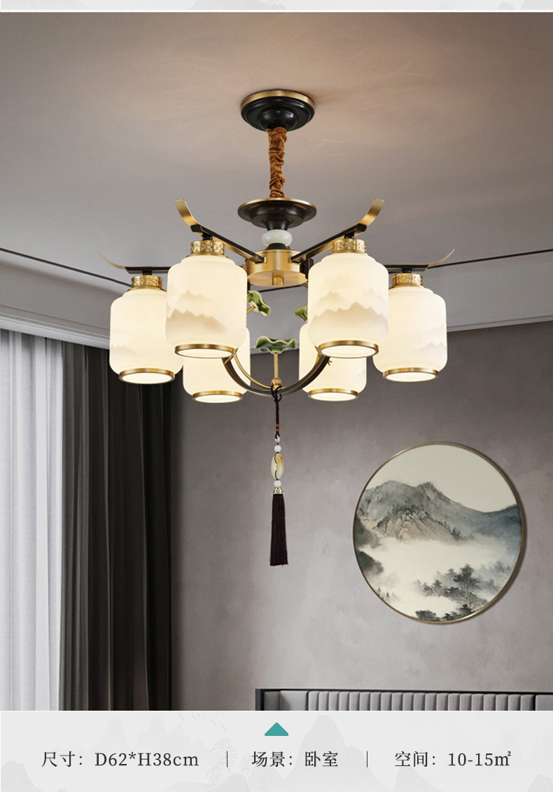 新中式全铜吊灯T9035系列全铜简约客厅卧室餐厅灯现代酒店别墅工程中国风灯具