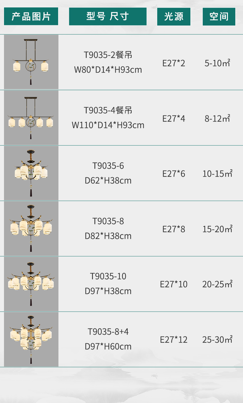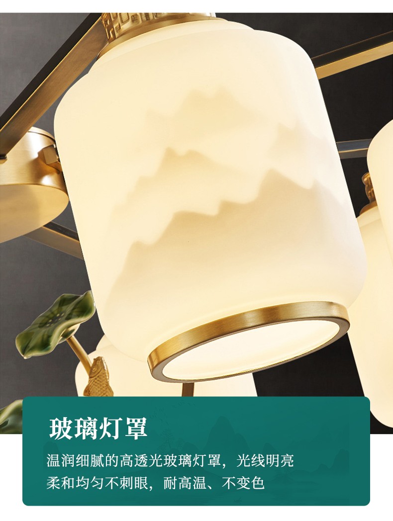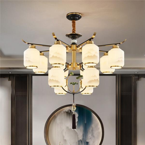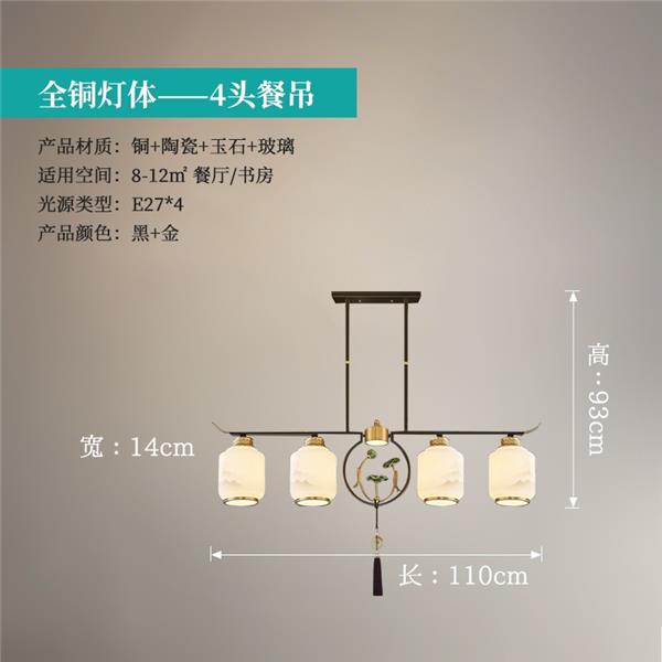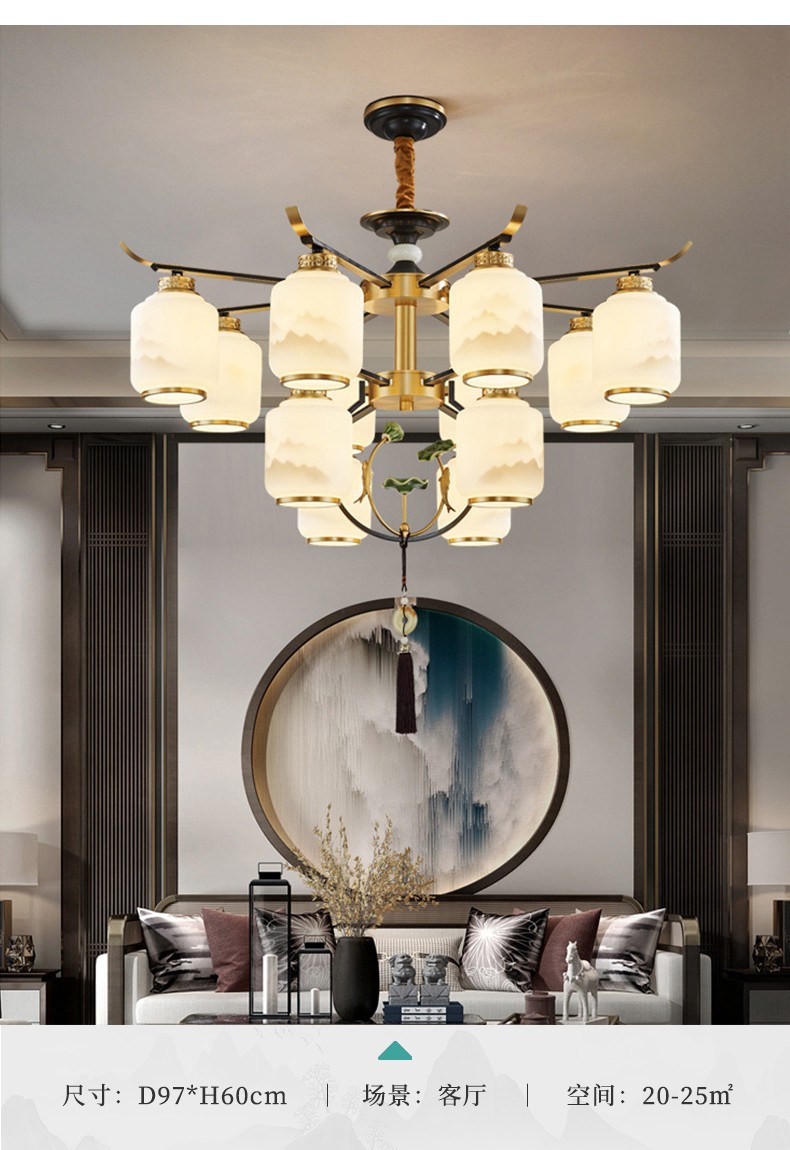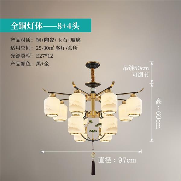 新中式全铜吊灯T9035系列全铜简约客厅卧室餐厅灯现代酒店别墅工程中国风灯具