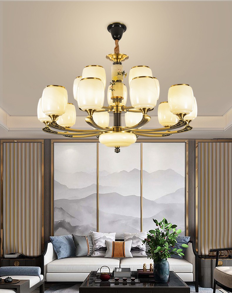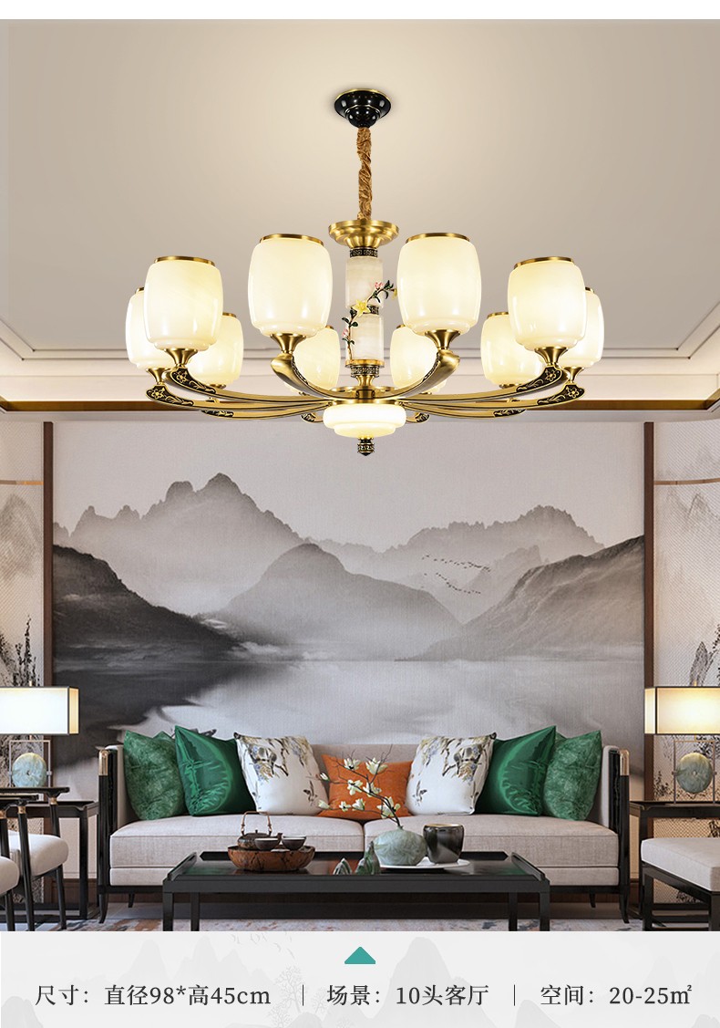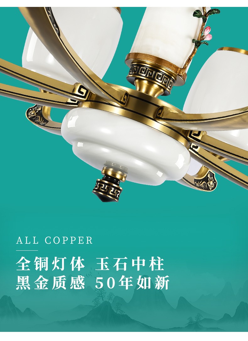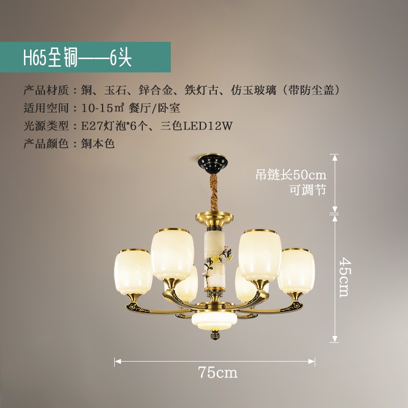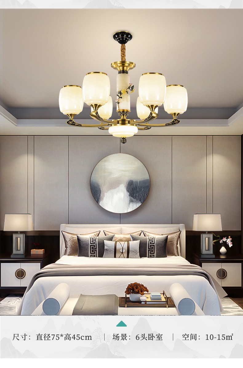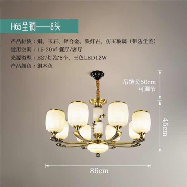 新中式全铜吊灯T7116系列全铜简约客厅卧室餐厅灯现代酒店别墅工程中国风灯具