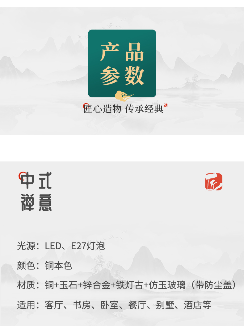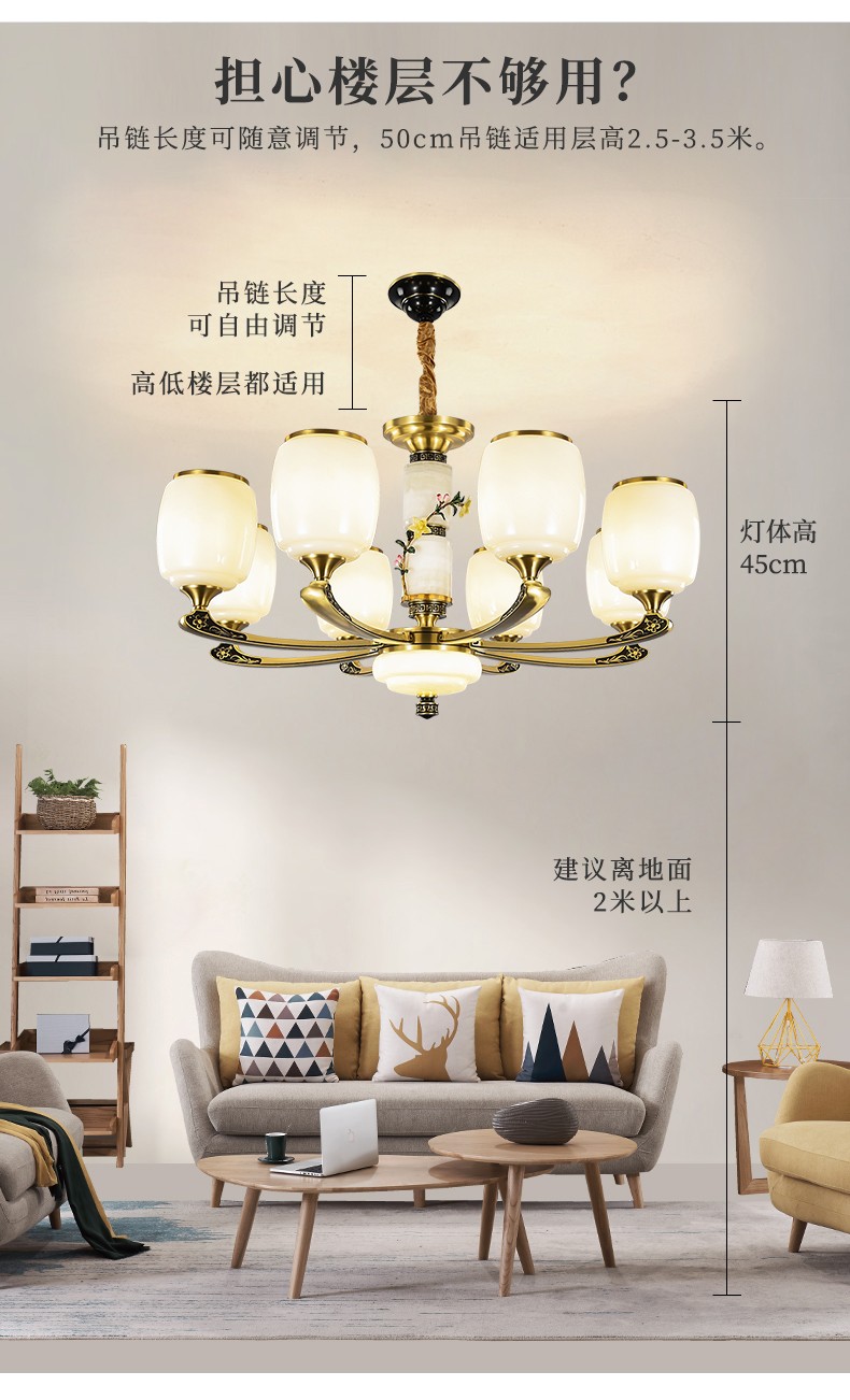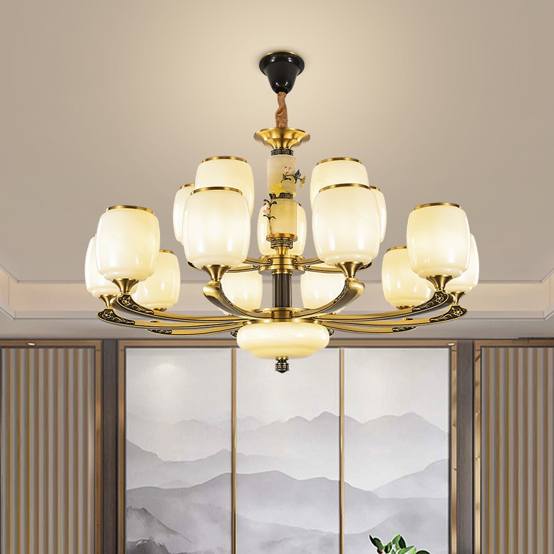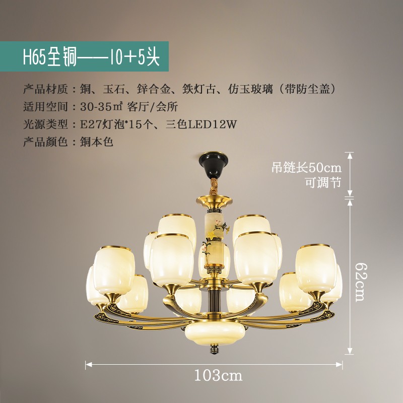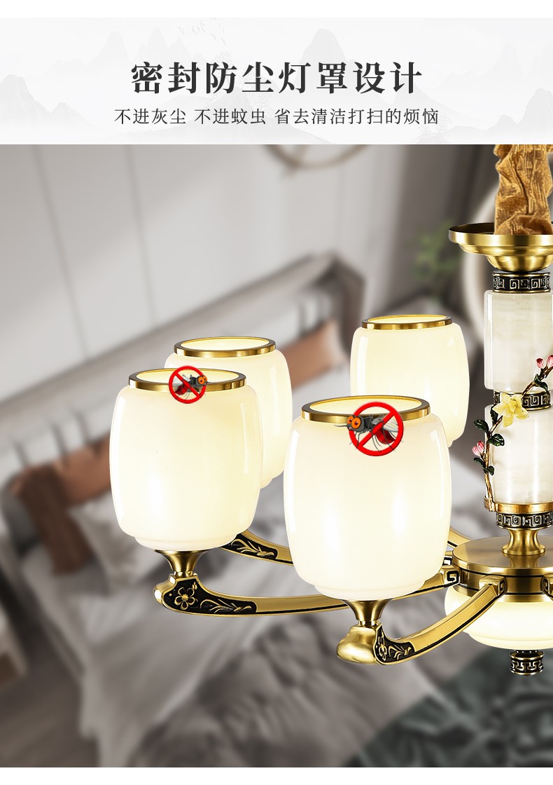 新中式全铜吊灯T7116系列全铜简约客厅卧室餐厅灯现代酒店别墅工程中国风灯具