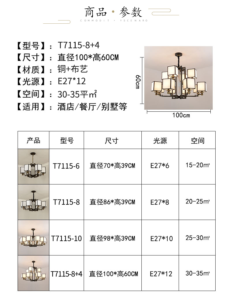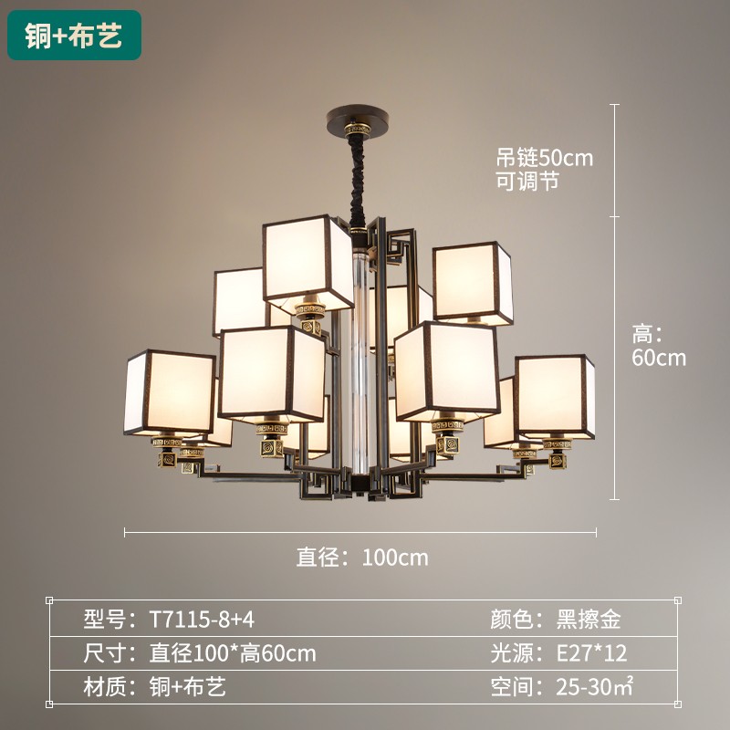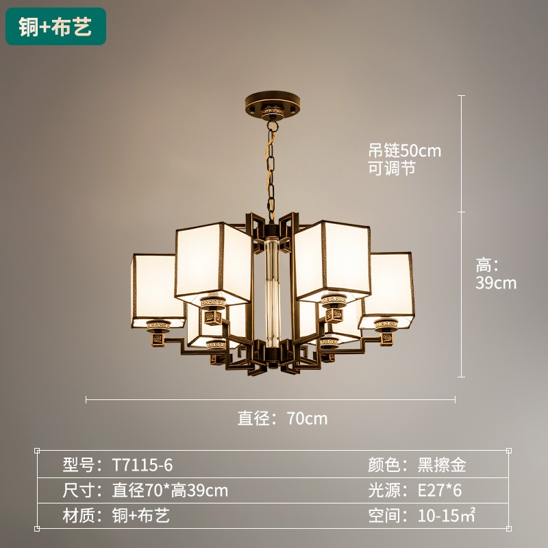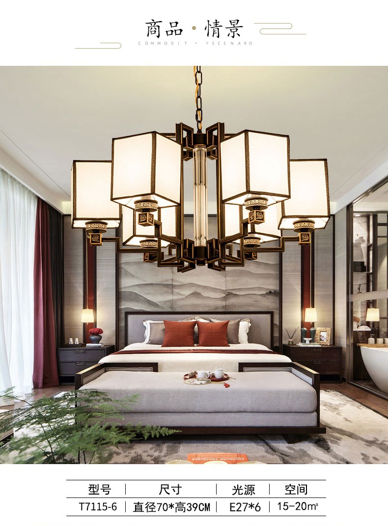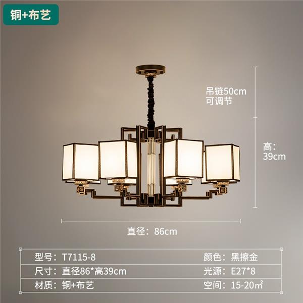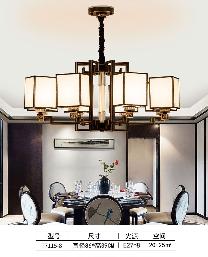 新中式全铜吊灯T7115系列全铜客厅灯简约客厅卧室餐厅灯现代酒店别墅工程中新中式