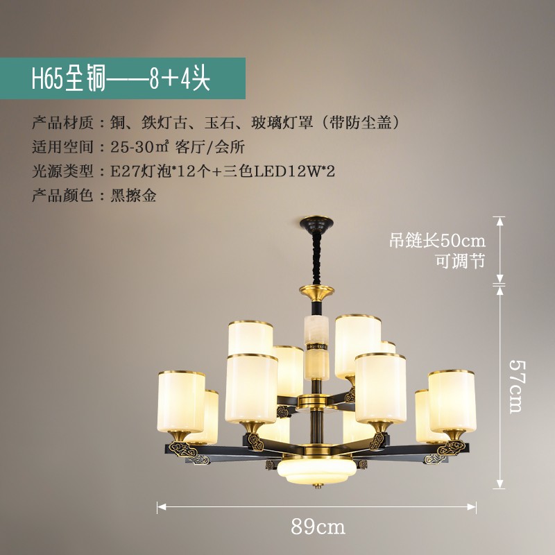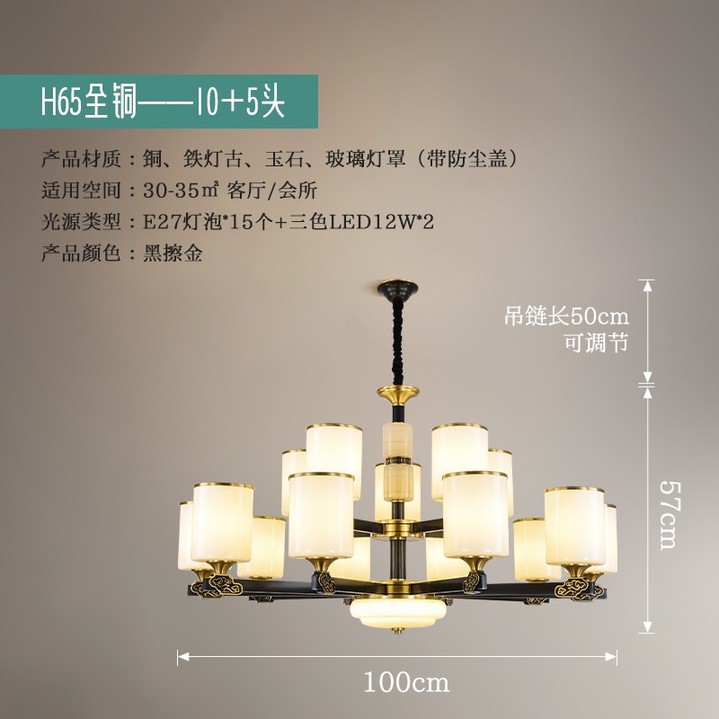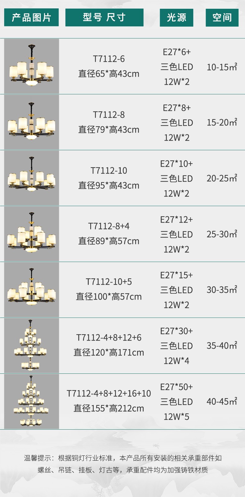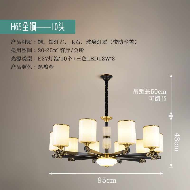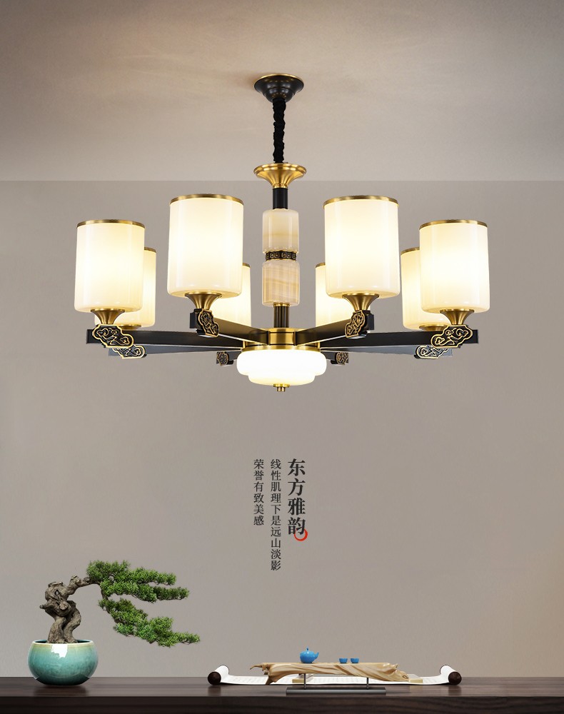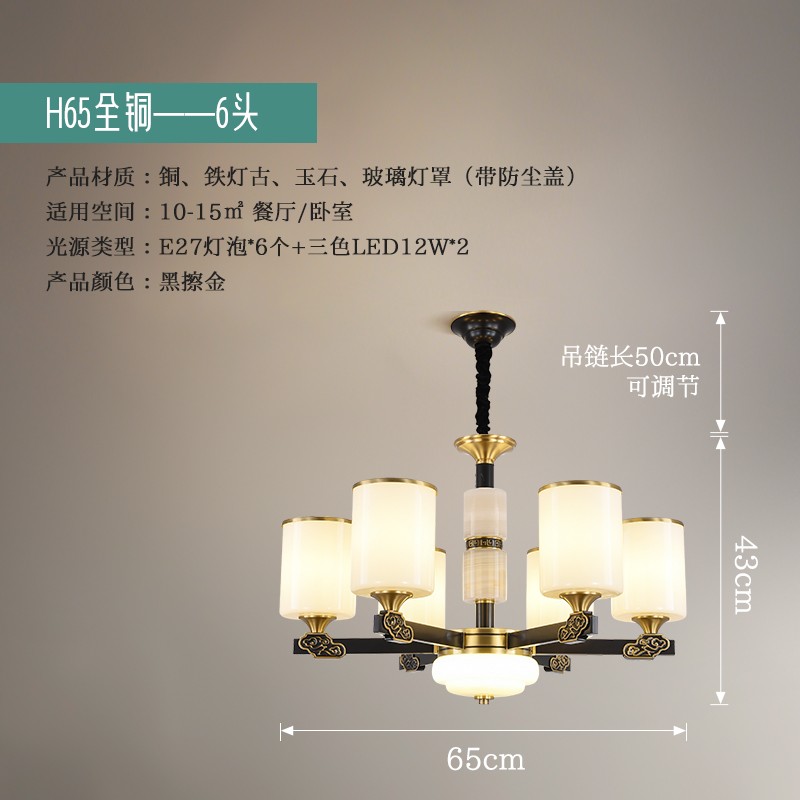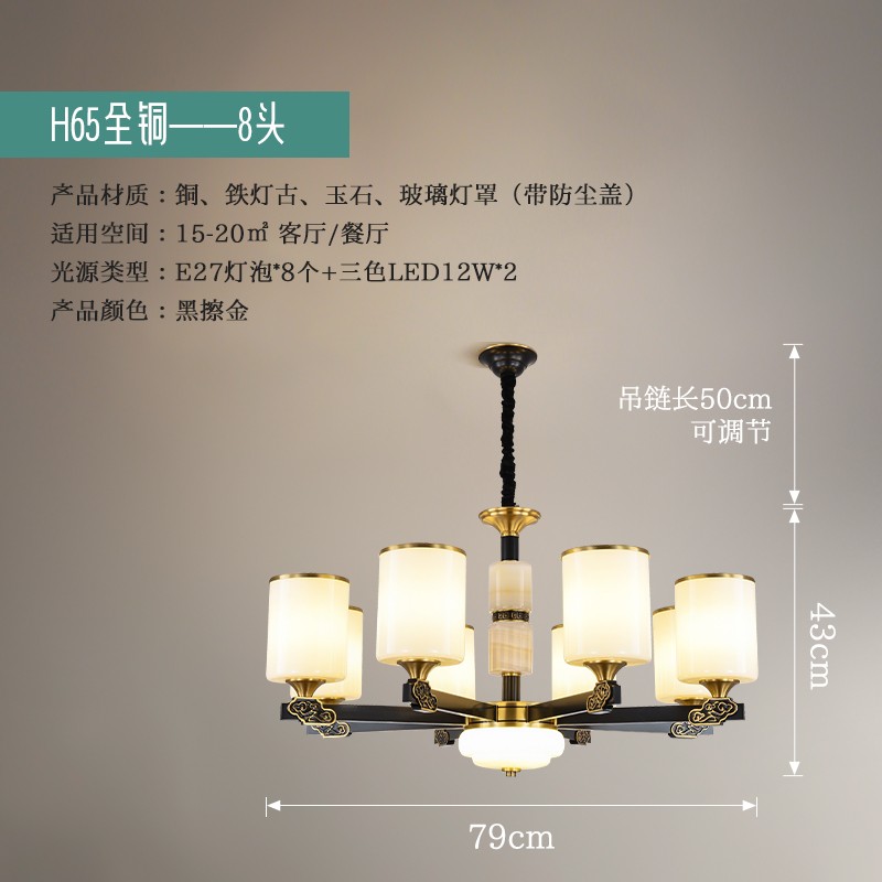 新中式全铜吊灯T7112系列全铜客厅灯简约客厅卧室餐厅灯现代酒店别墅工程中国风灯具