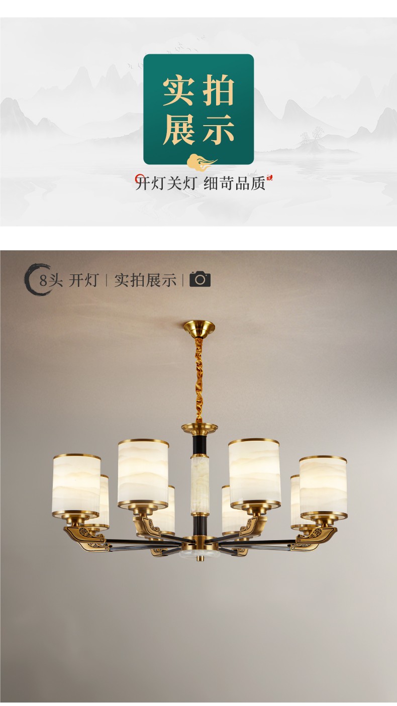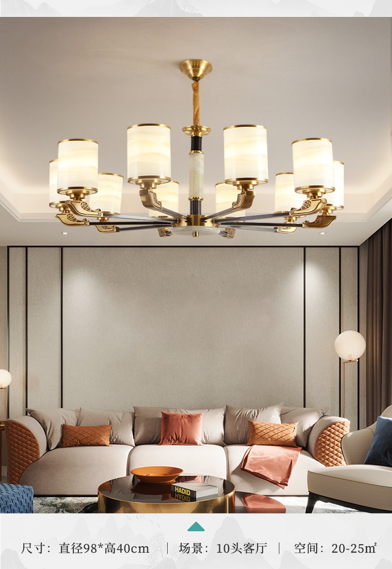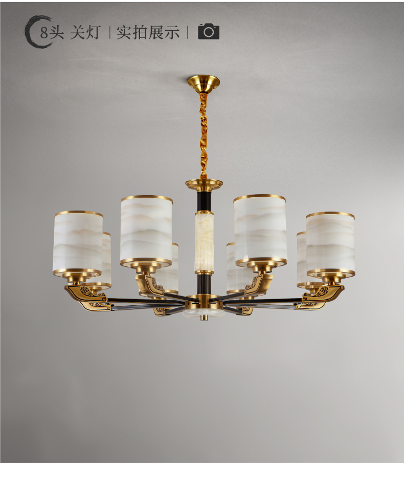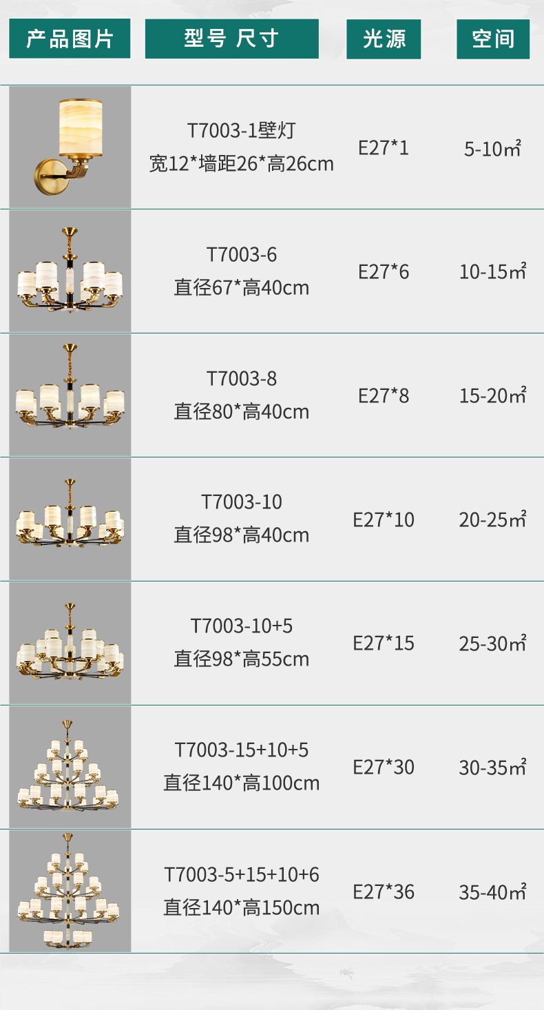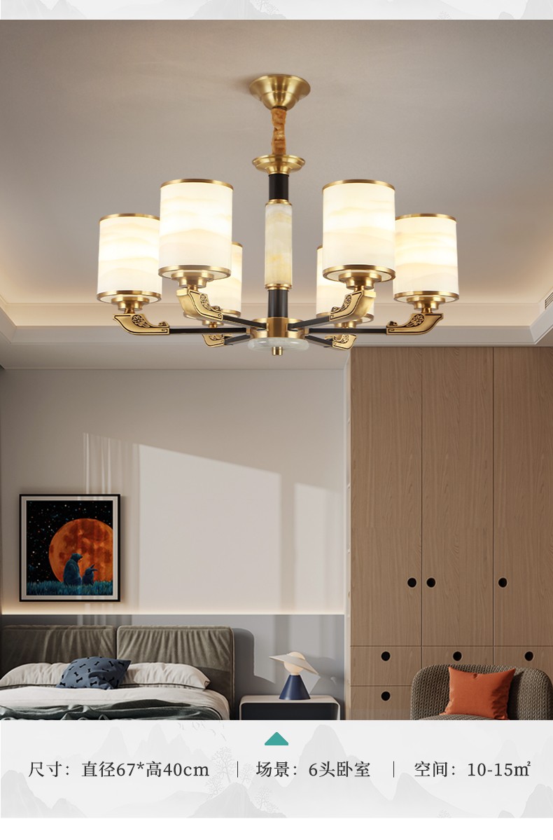 新中式T7003系列吊灯客厅灯家用古典餐厅卧室现代简约仿玉石全铜灯具中国风