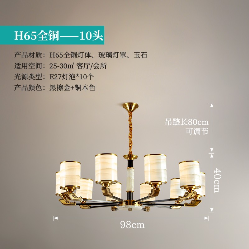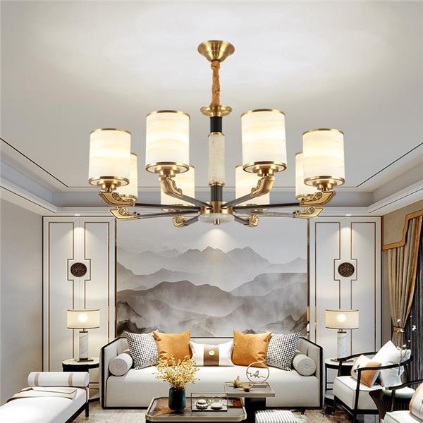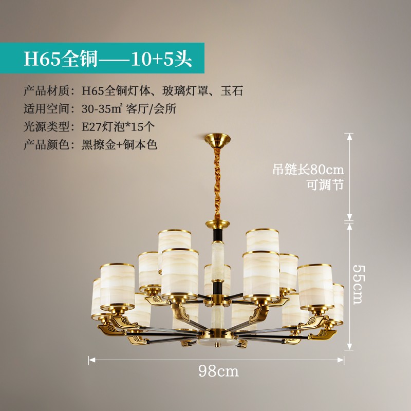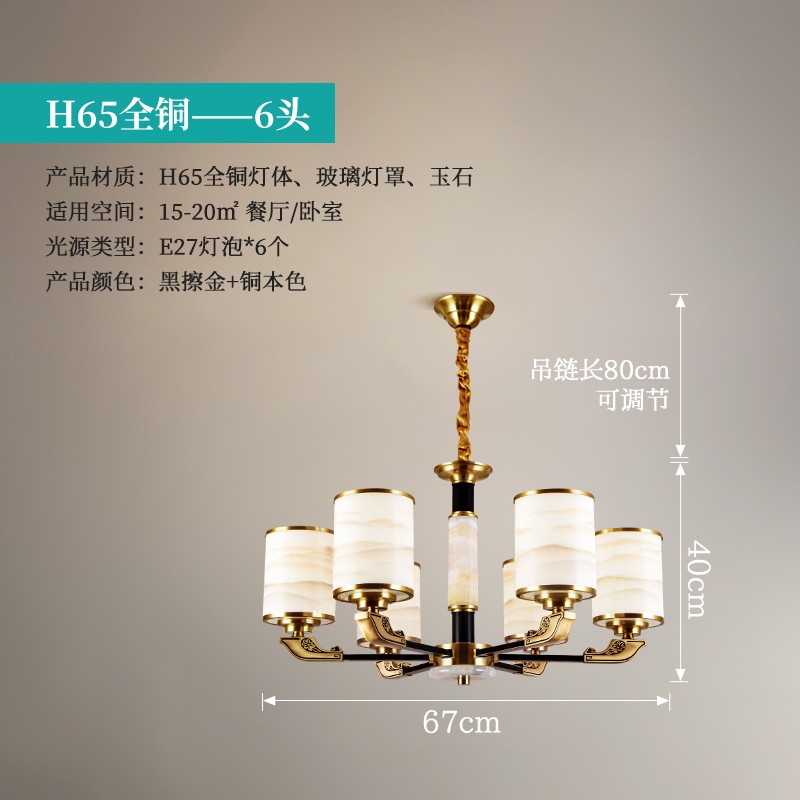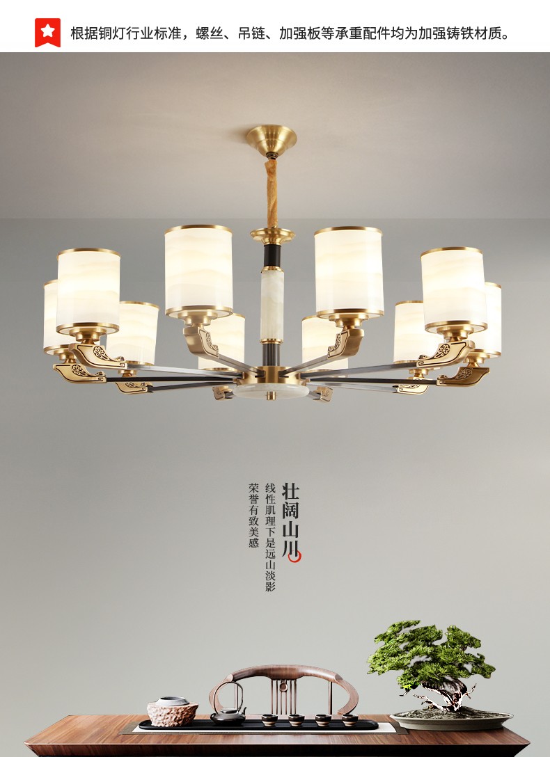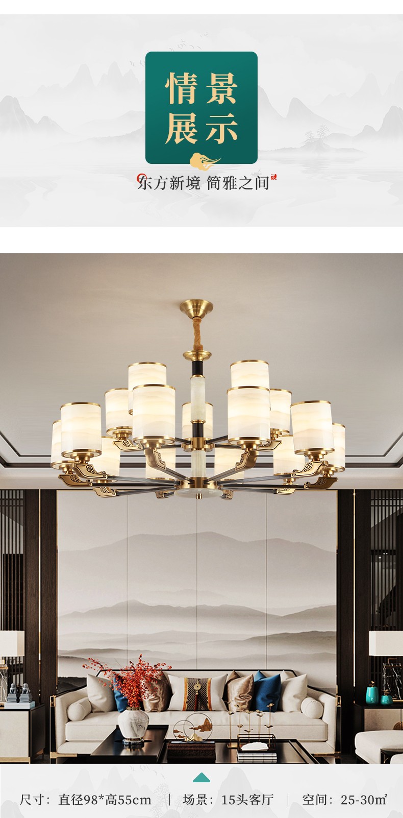 新中式T7003系列吊灯客厅灯家用古典餐厅卧室现代简约仿玉石全铜灯具中国风