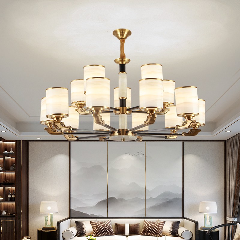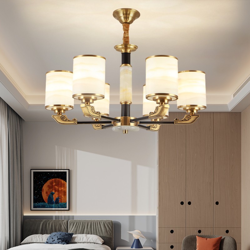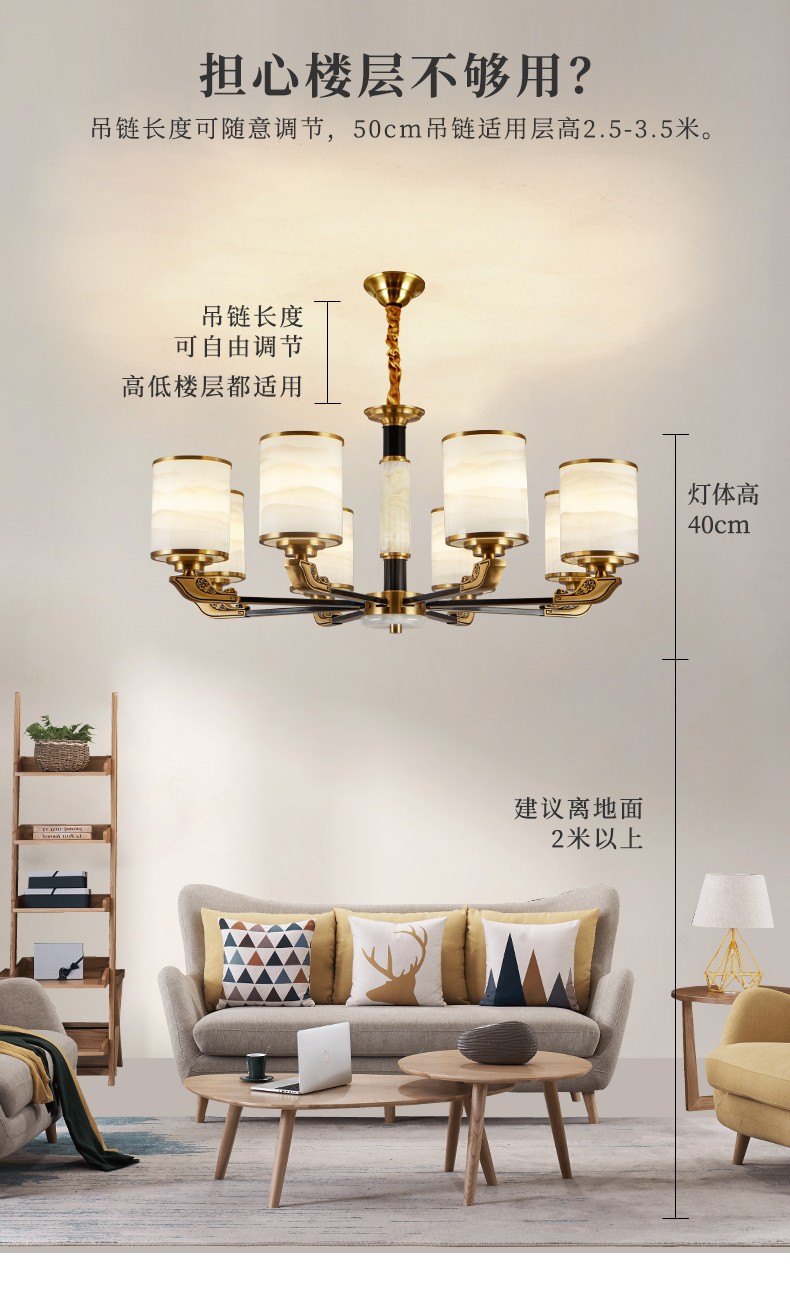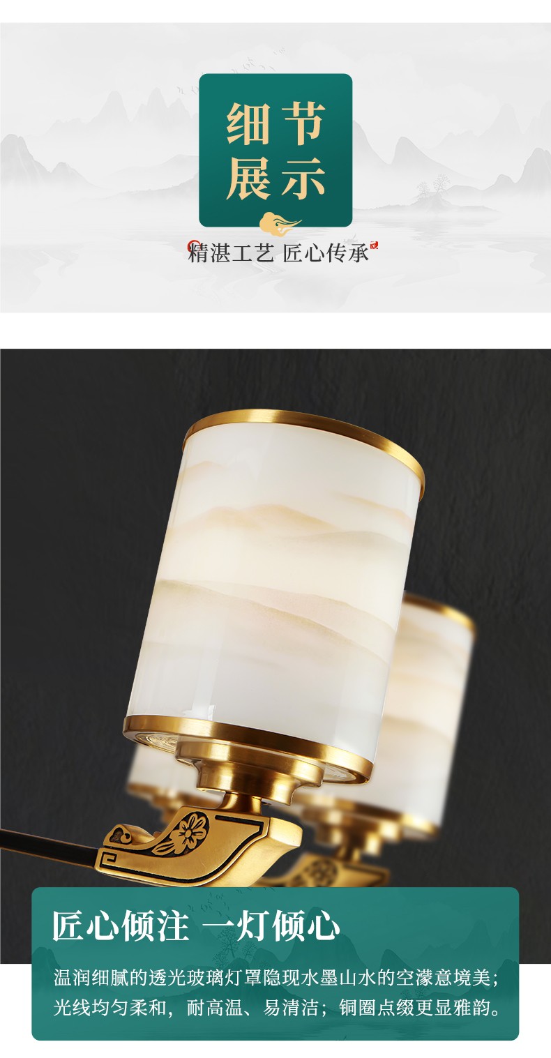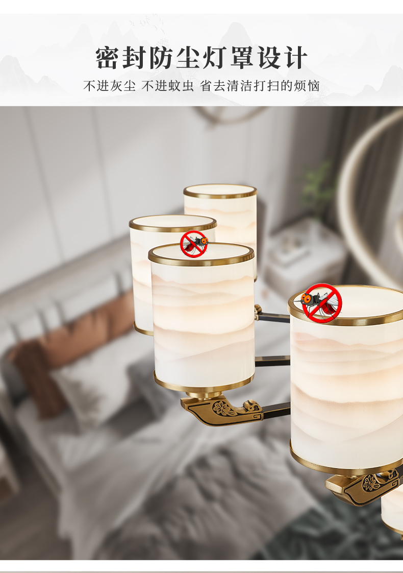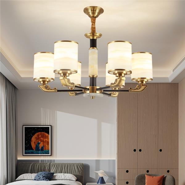 新中式T7003系列吊灯客厅灯家用古典餐厅卧室现代简约仿玉石全铜灯具中国风