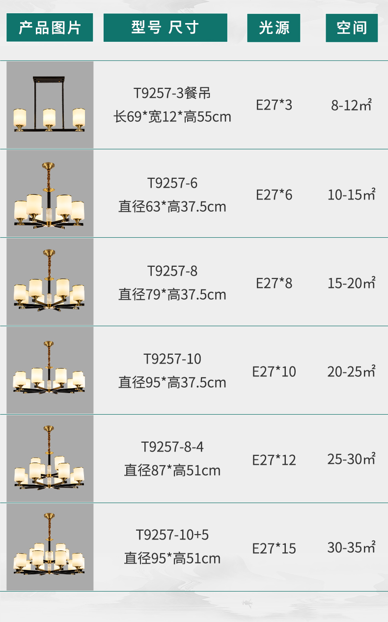 新中式全铜T9257系列客厅吊灯中国风别墅现代简约新款大气卧室吸吊餐厅灯具
