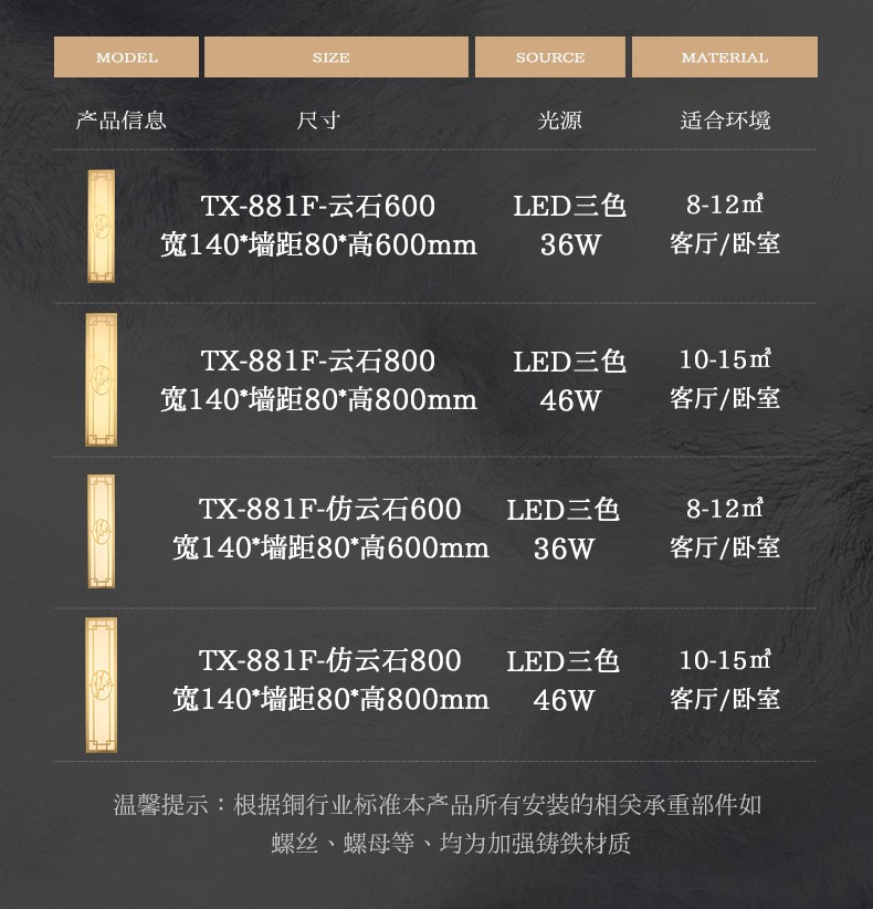 新中式全铜壁灯TX-881F系列全铜客厅灯简约客厅卧室餐厅灯现代酒店别墅工程中国风灯具