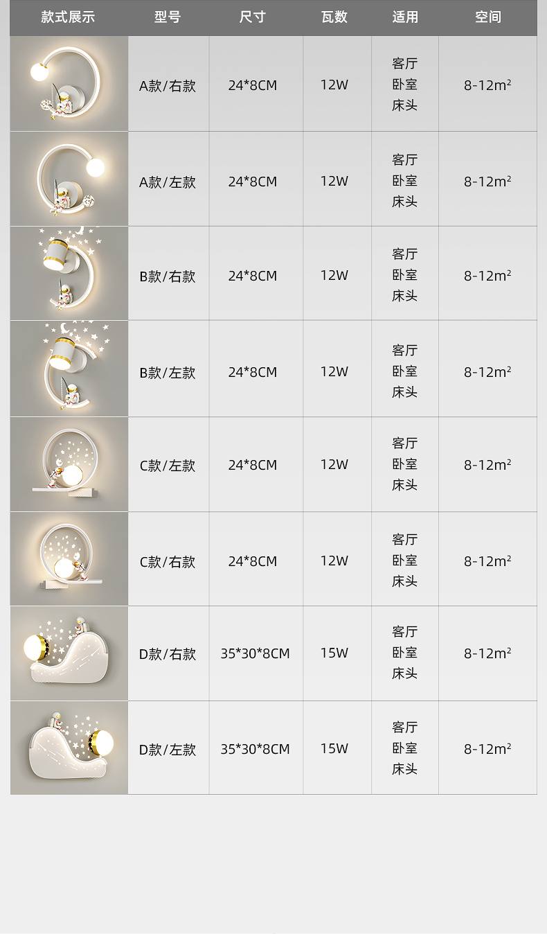 LY-279-281现代创意儿童壁灯铁艺铝材