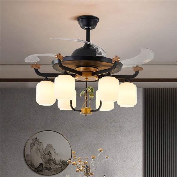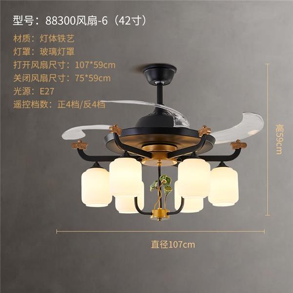铁亚克力玻璃 客厅餐厅 新中式 风扇灯 88300