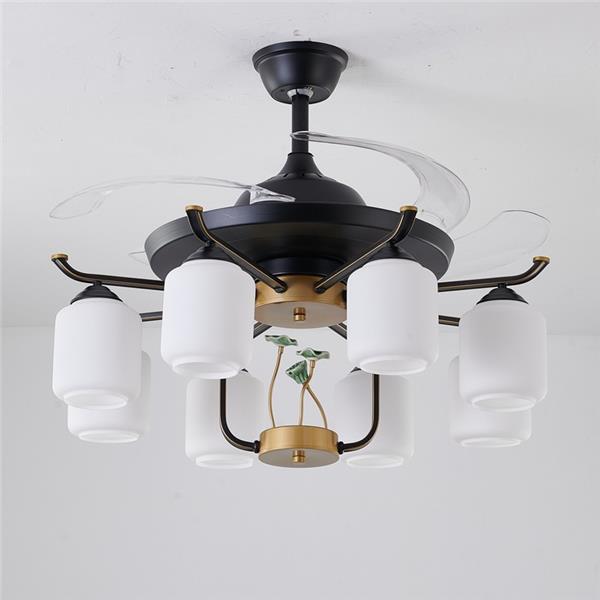 铁亚克力玻璃 客厅餐厅 新中式 风扇灯 3009