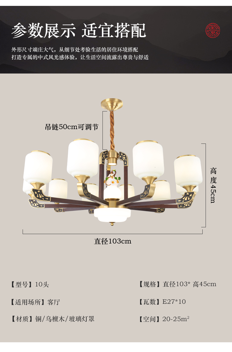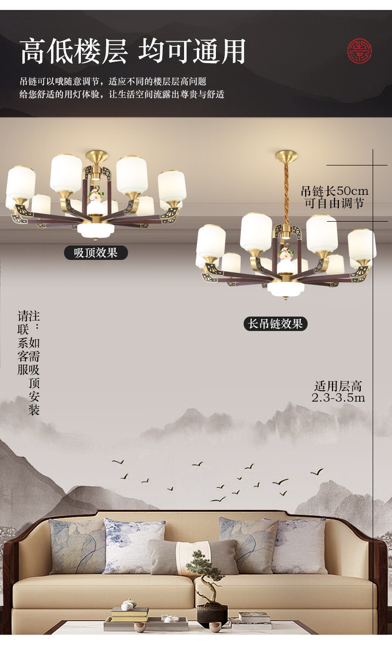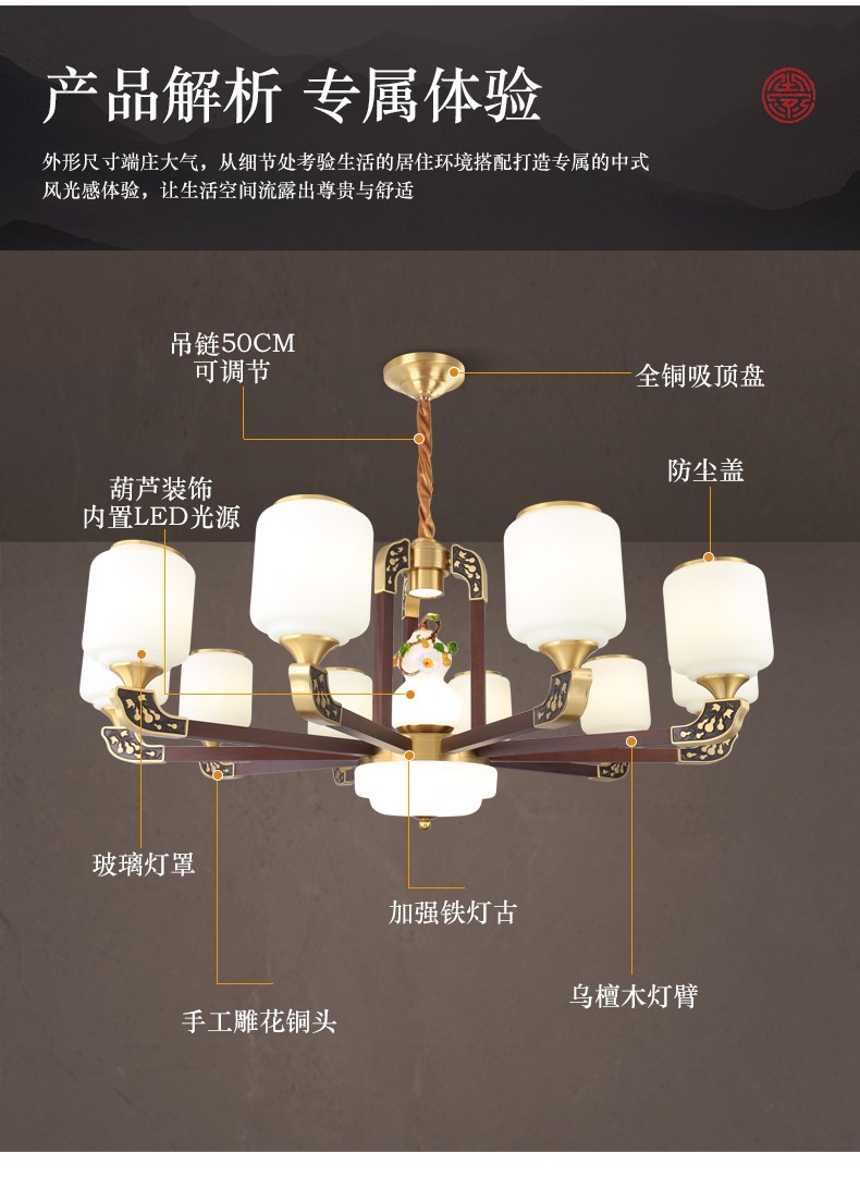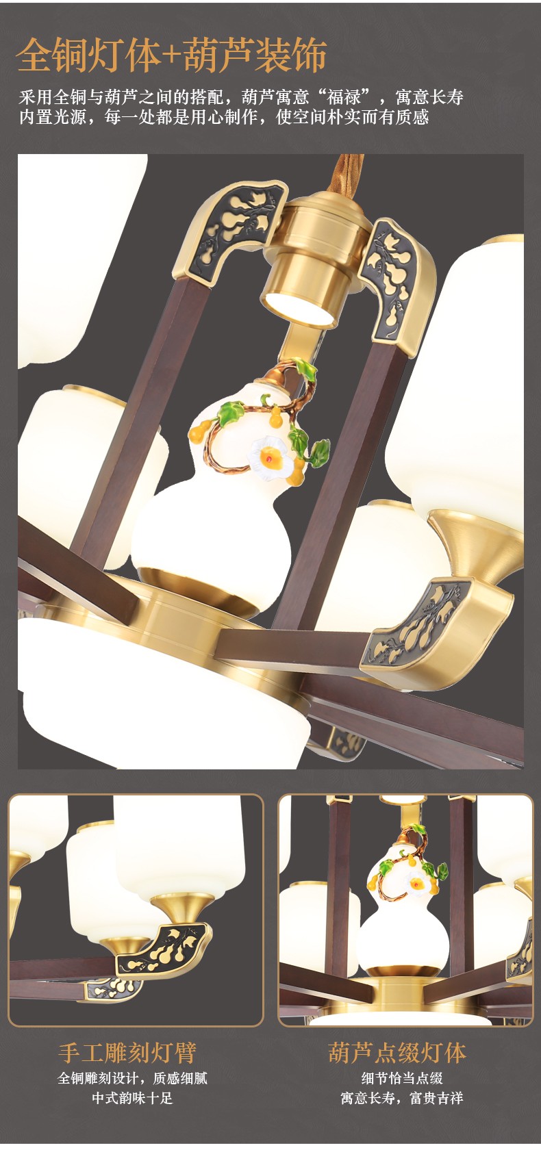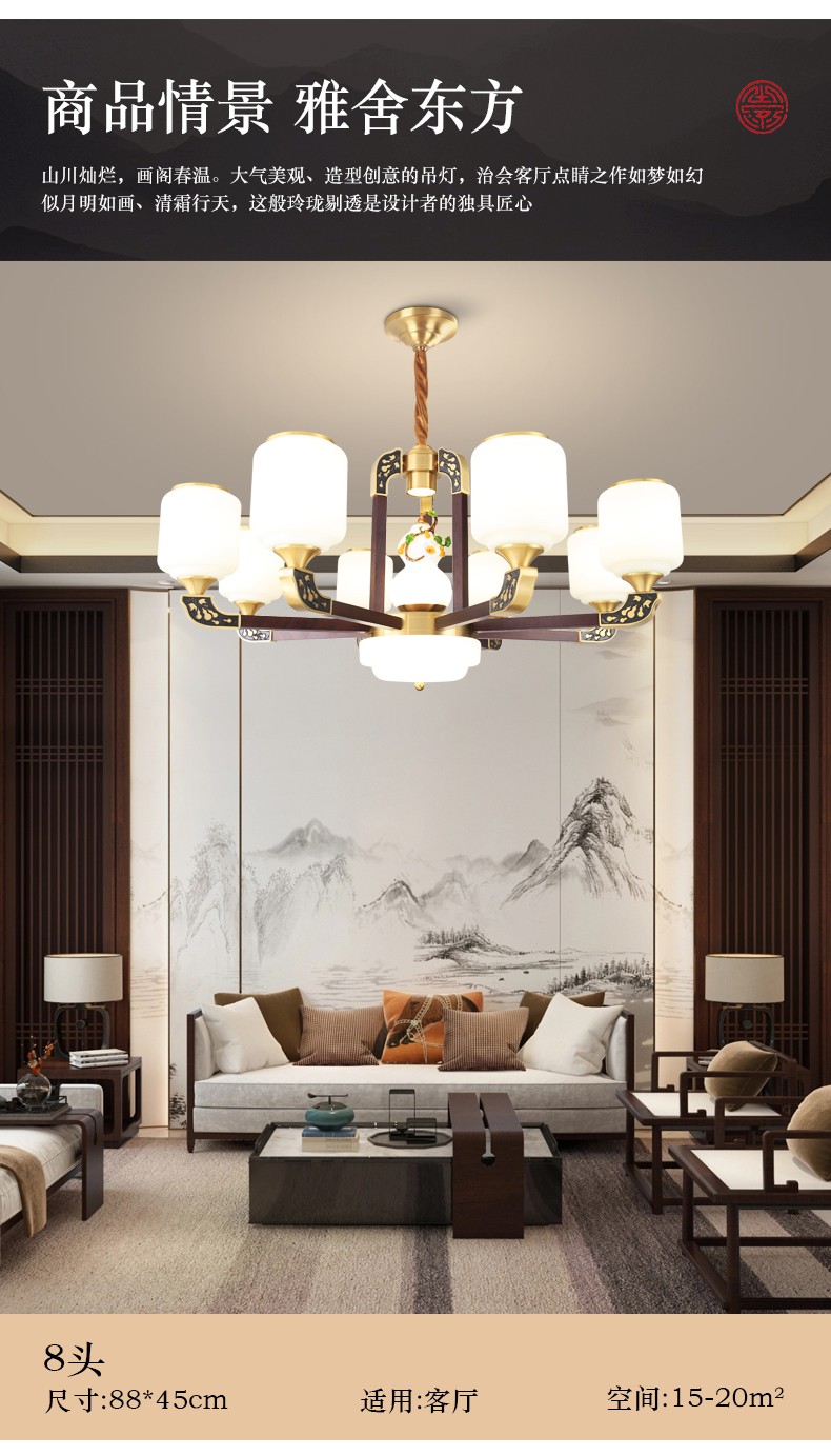 034新中式木艺全铜吊灯034-8541