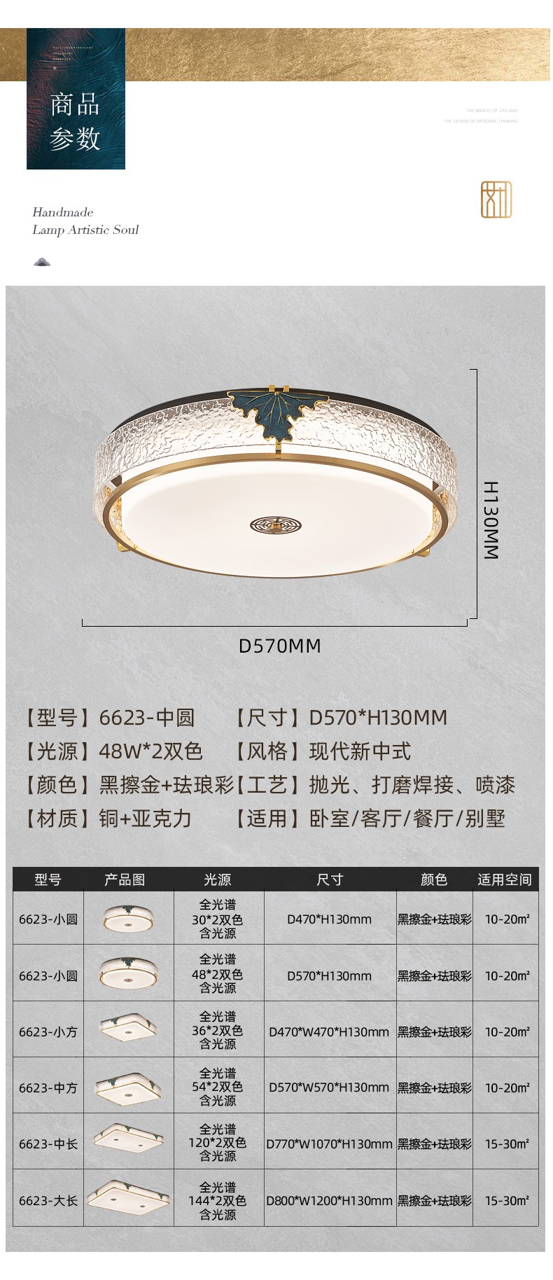 128全铜新中式吸顶灯128-6623系列