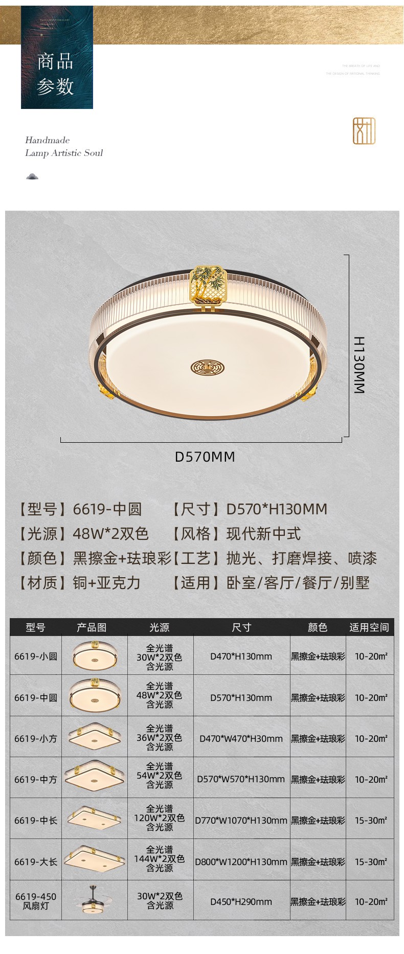 128全铜新中式吸顶灯128-6619系列