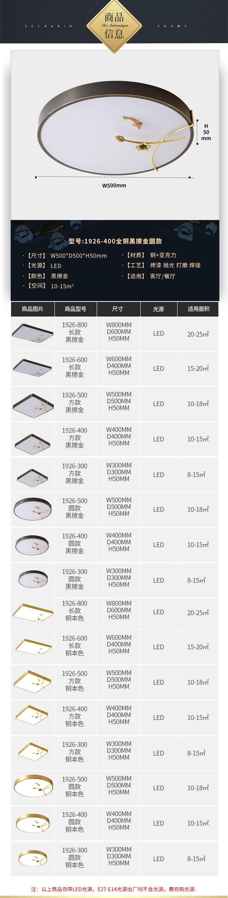 150新中式超薄全铜吸顶灯150-1926