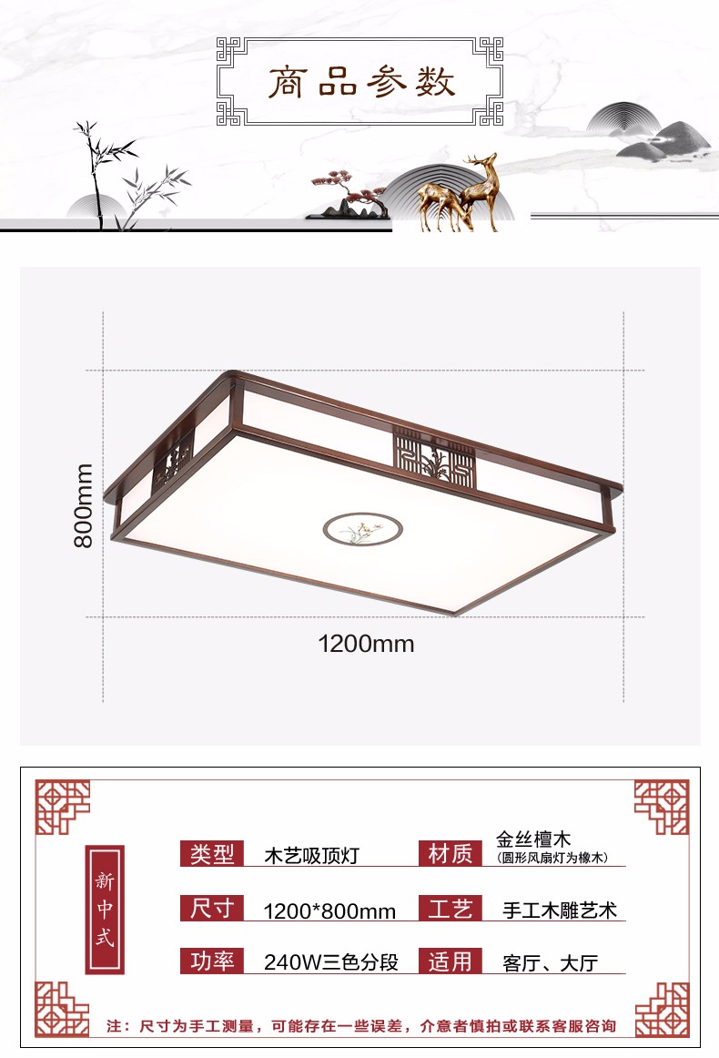 9035-YMJ金丝檀木吸顶灯客厅灯LED灯具