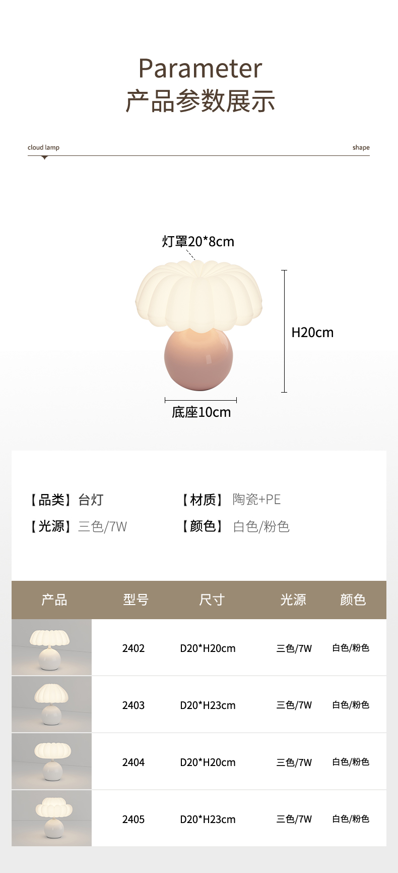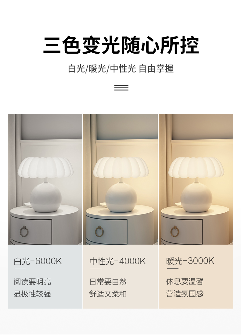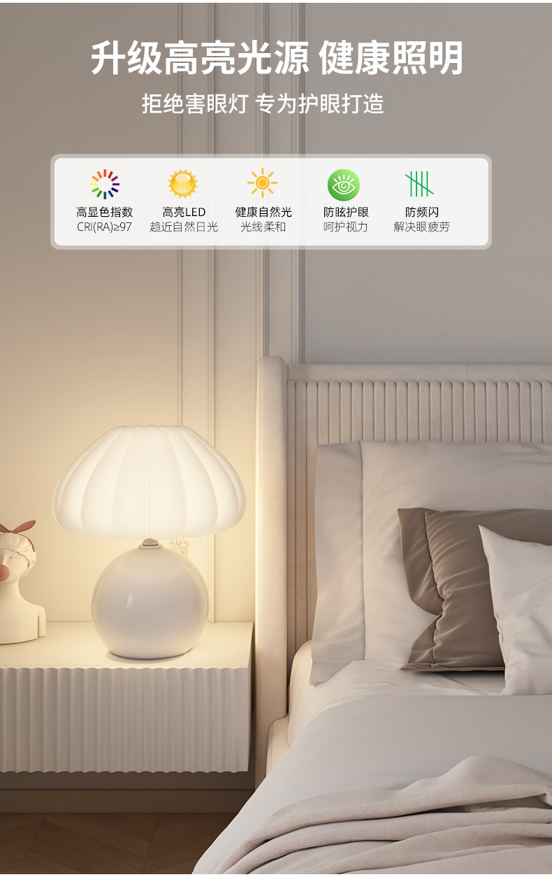 2403-DFF全光谱护眼灯奶油风台灯卧室床头灯现代简约氛围灯装饰小夜灯