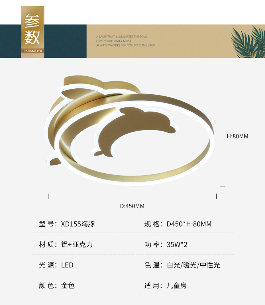 铝 亚克力 儿童房 现代简约 吸顶灯 LC155海豚