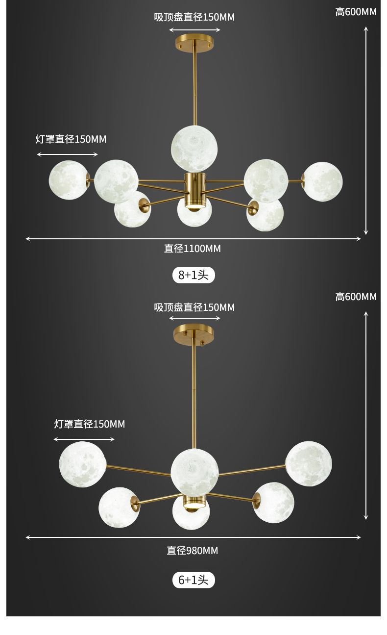 商品货号:HCT115-6+1头/金色/03020,包装尺寸:980x980x600(mm),商品尺寸:980x980x600(mm),商品重量:7.000,北欧风格:现代北欧,类型:吊灯,空间:客厅,卧室,材质:铁艺,价格区间:200-500元,出厂不包光源:G9,专利:没有专利,头数:6头,质保年限:2年,专区类型:网红款