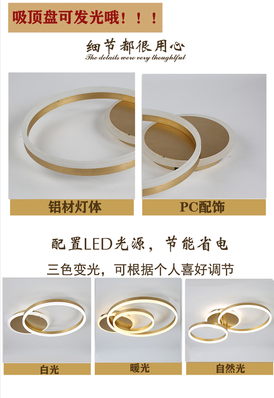 现代简约LED吸顶灯,使用高亮灯珠,三色变光