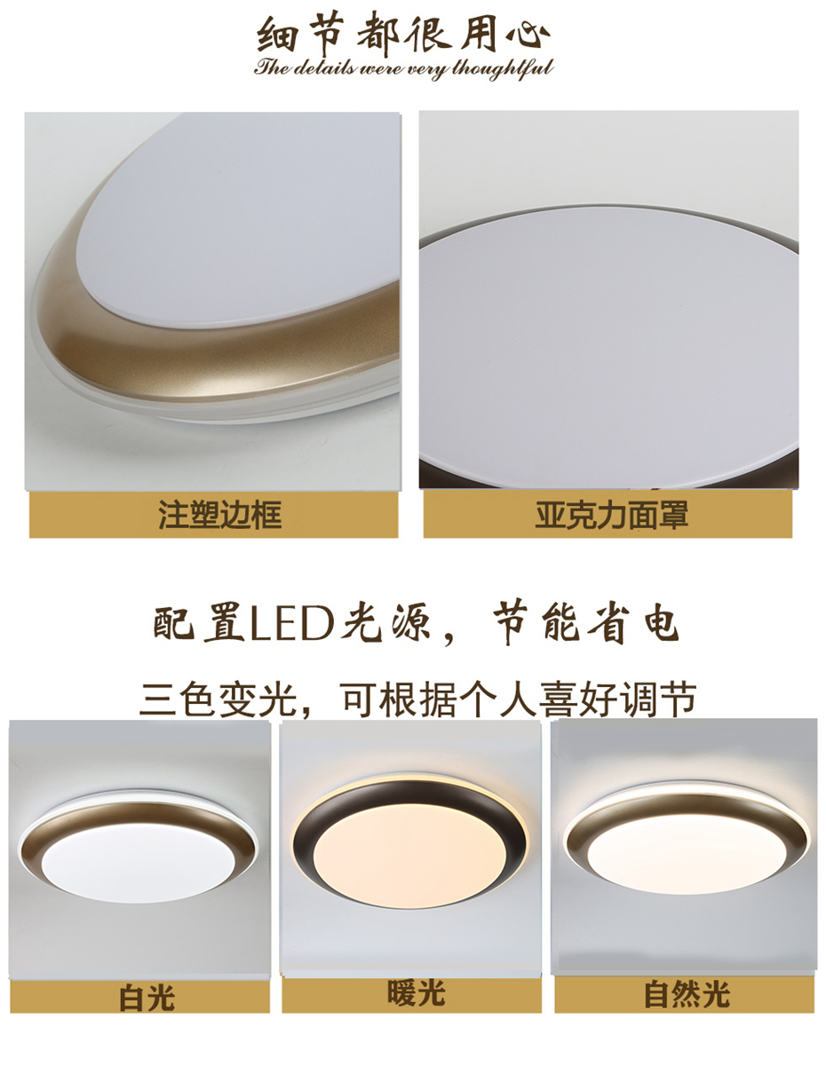 现代简约LED吸顶灯,使用高亮灯珠,三色变光