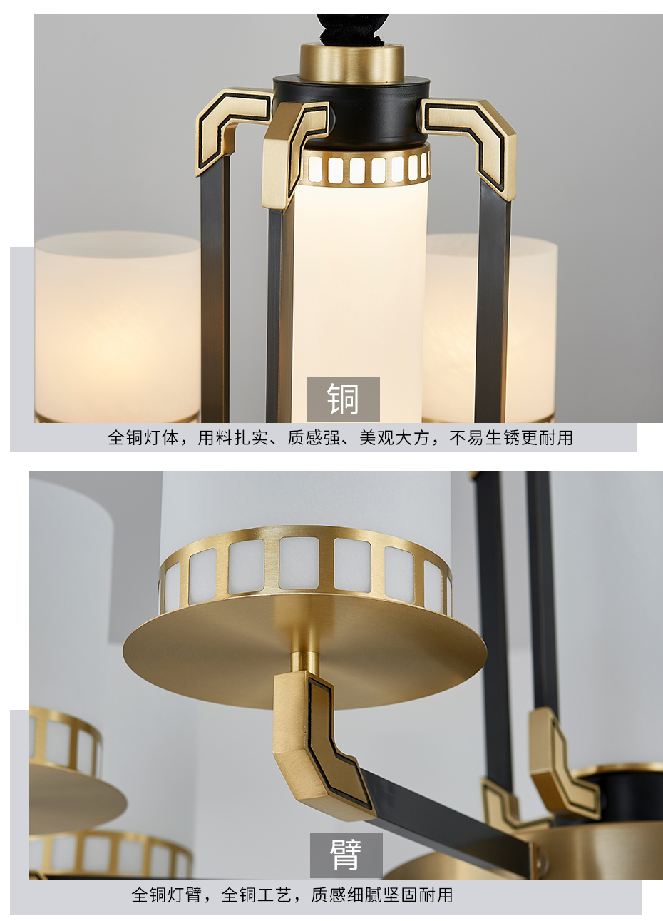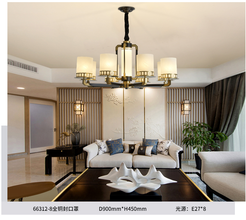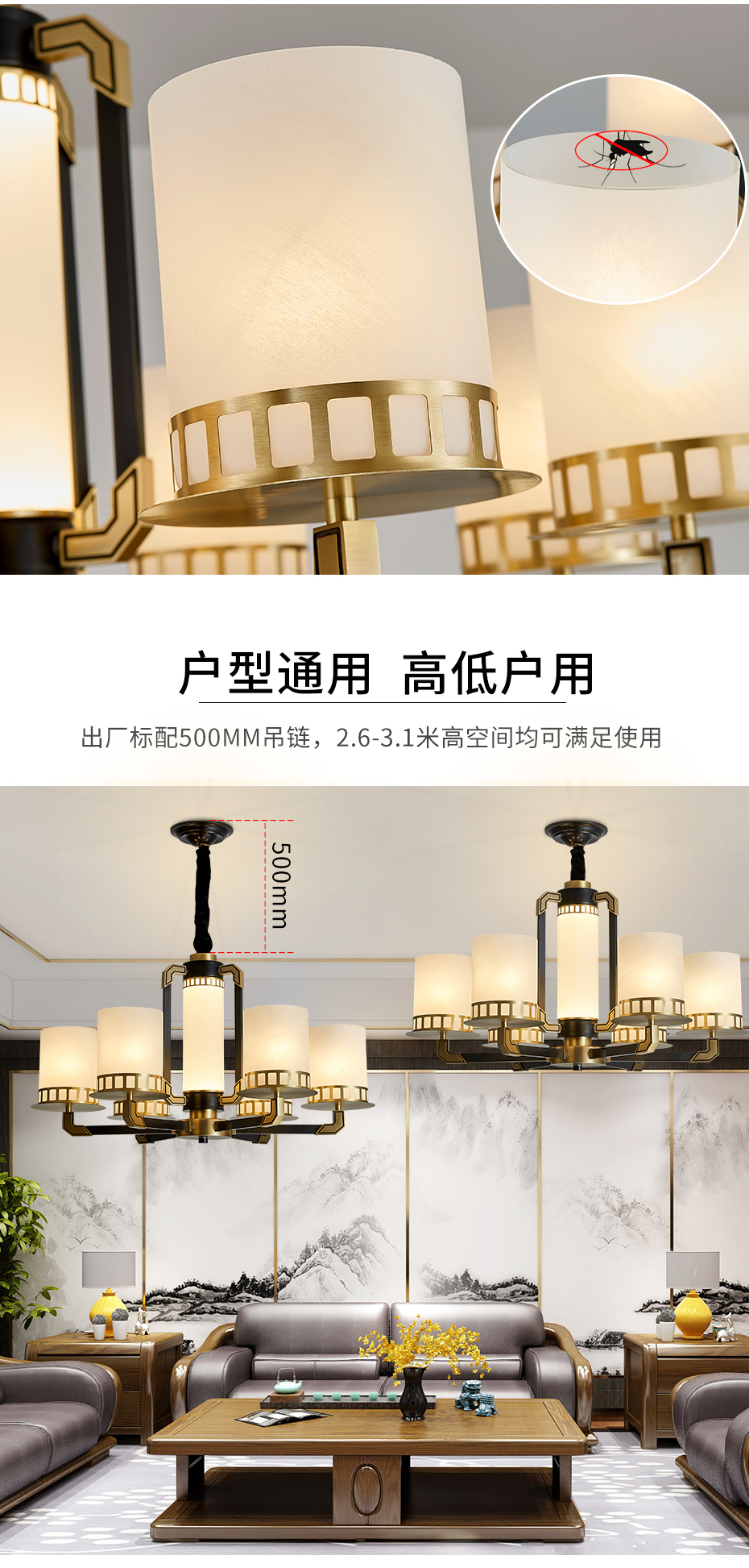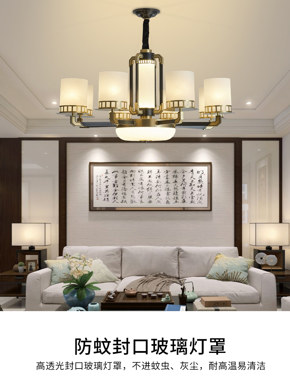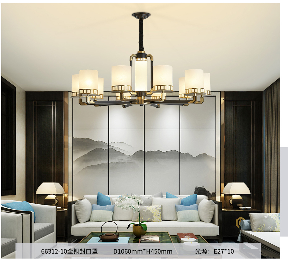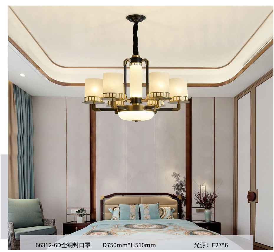 卧室 吊灯 新中式 66312-6全铜封口罩