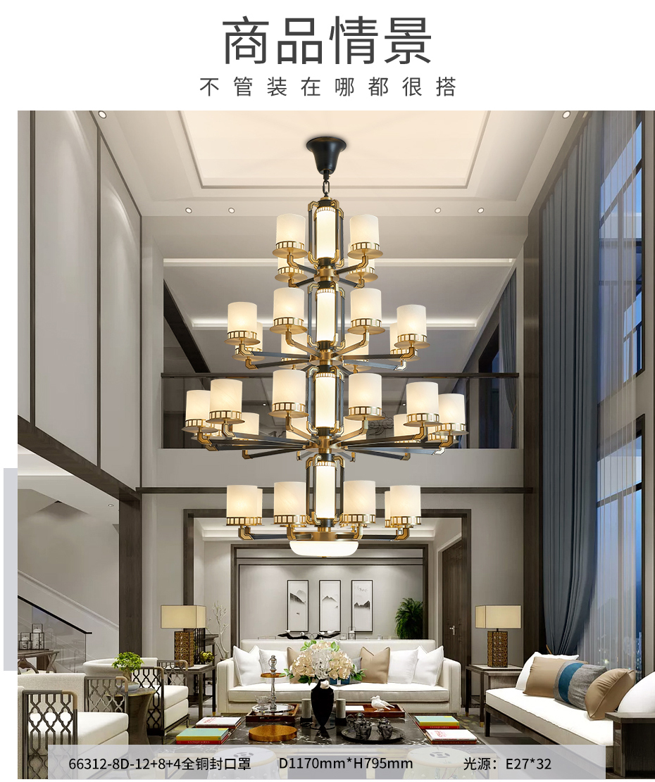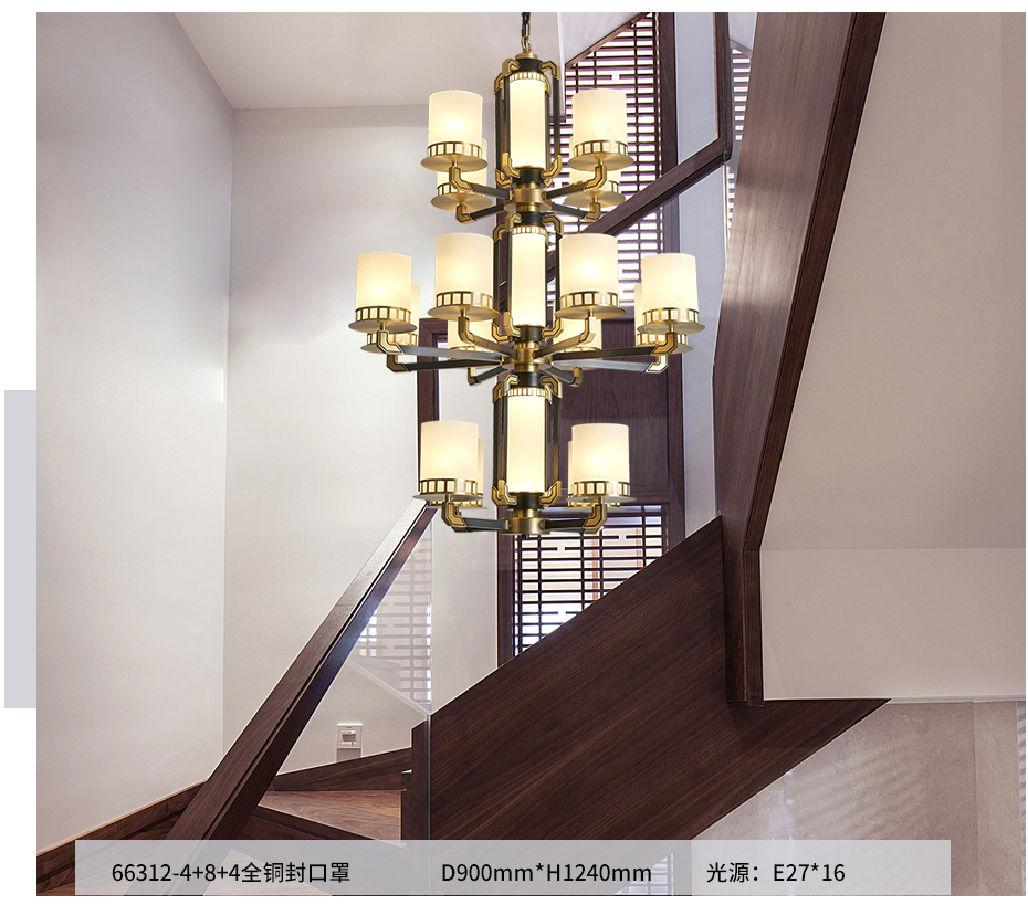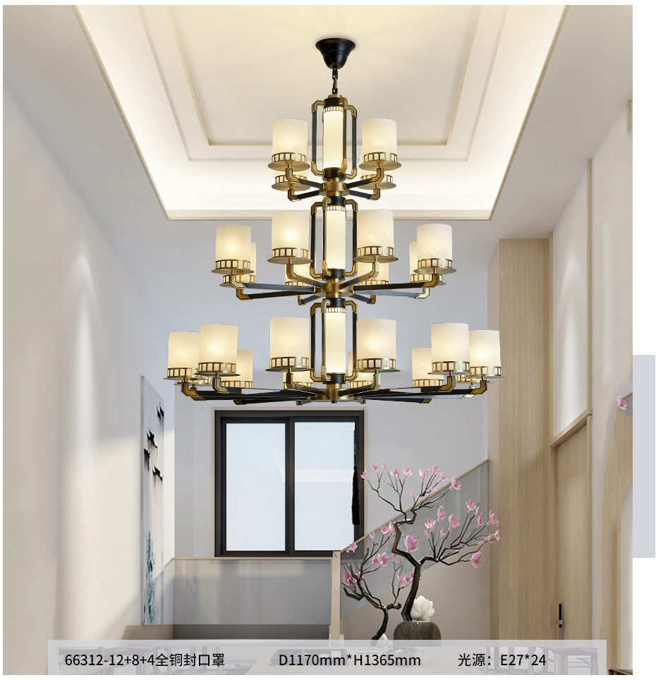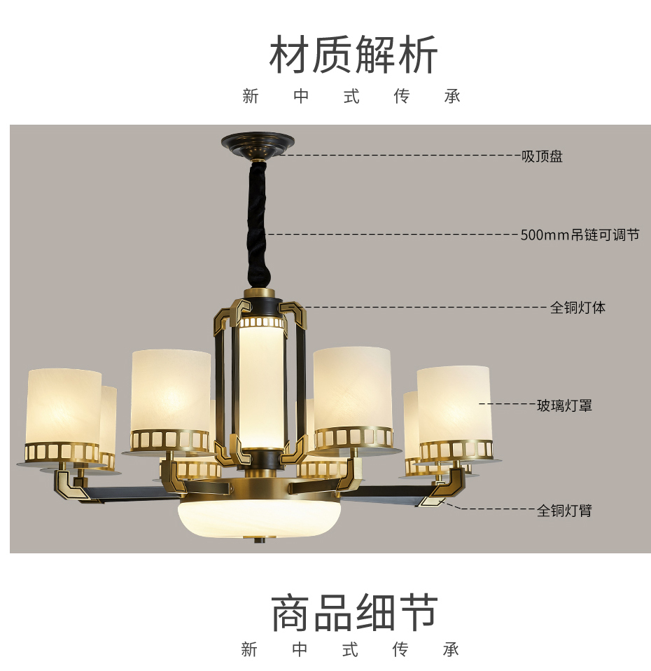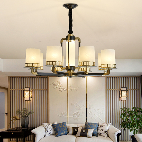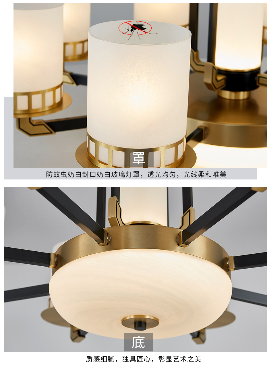 卧室 吊灯 新中式 66312-6全铜封口罩