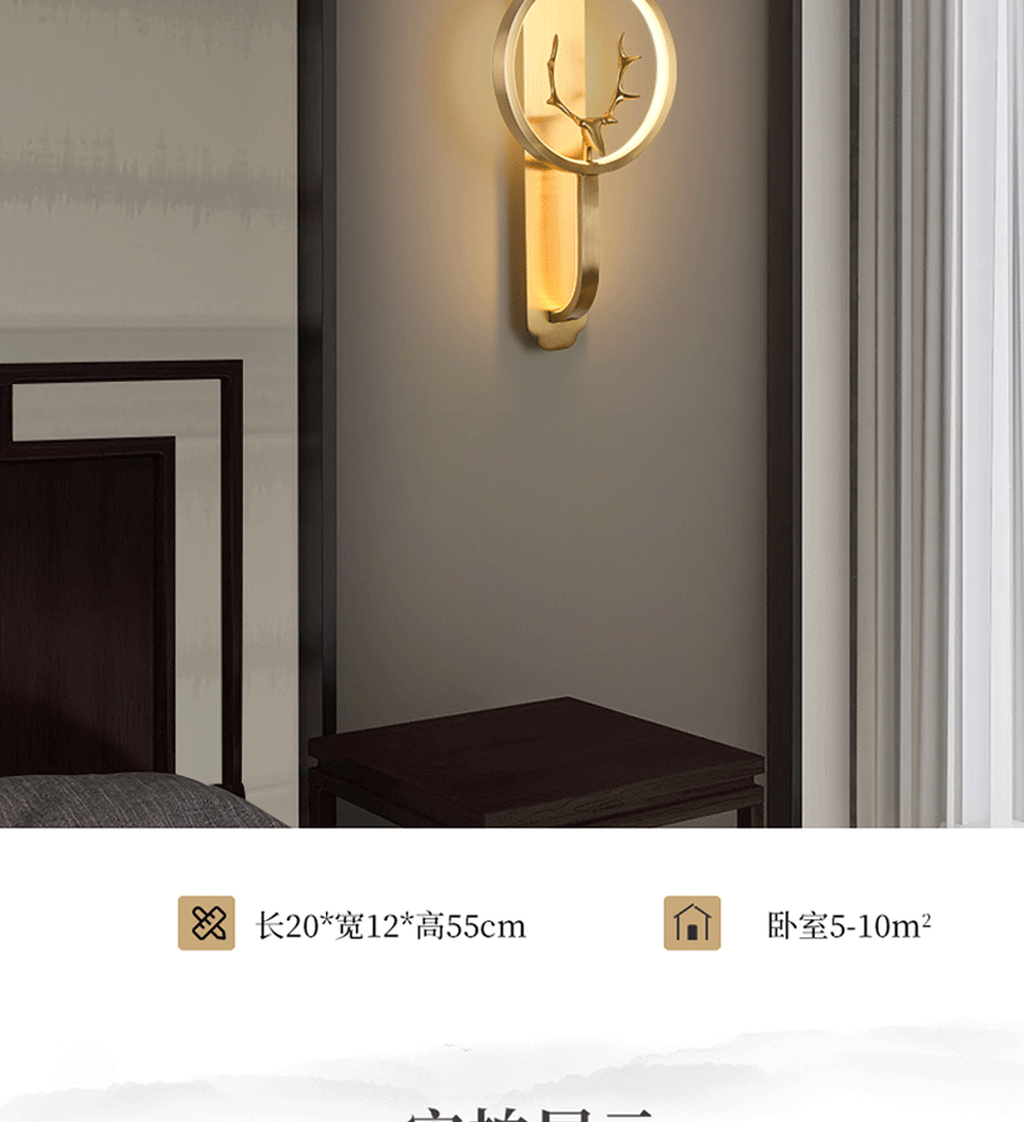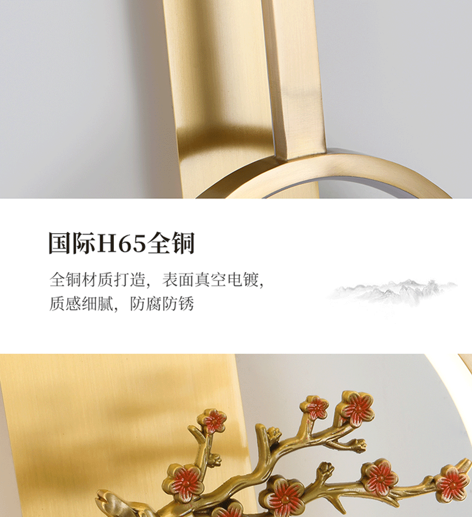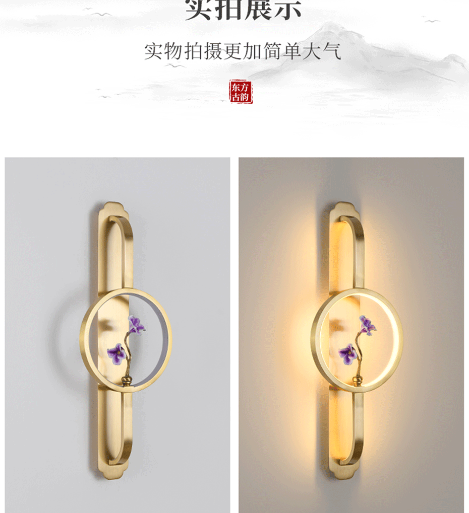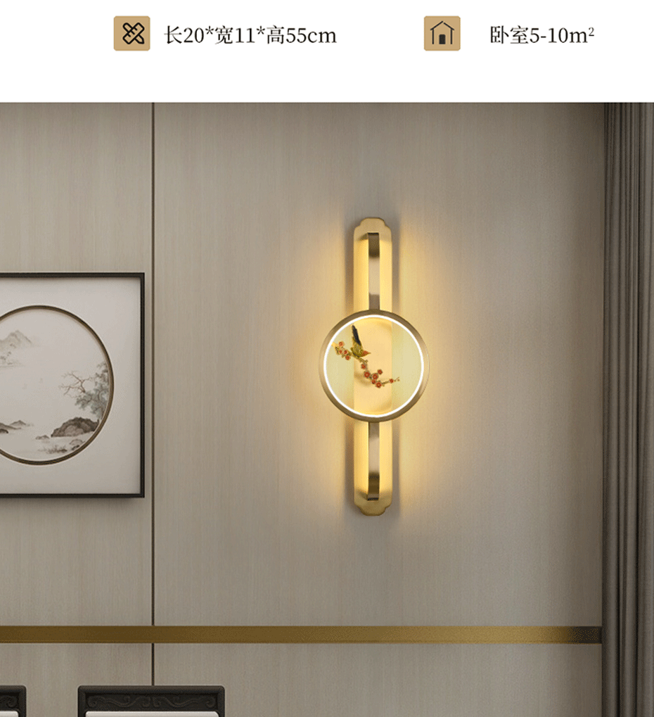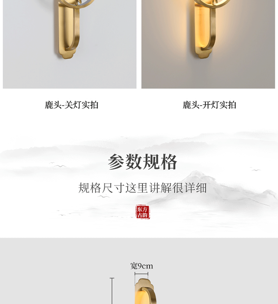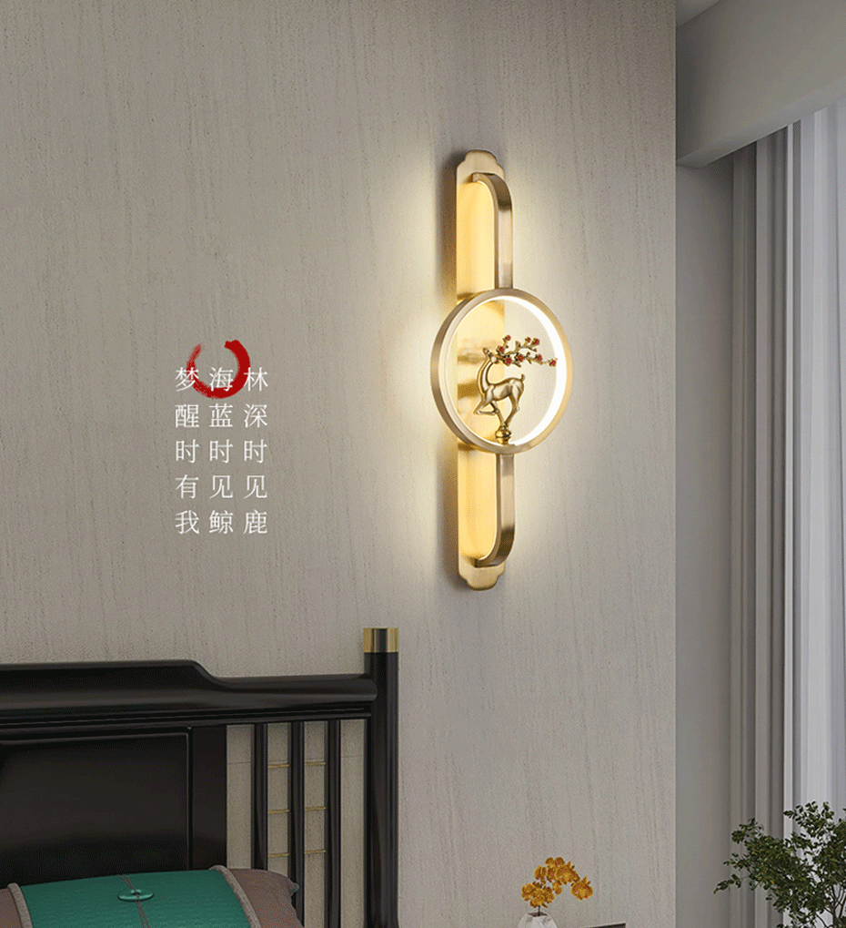 新中式客厅壁灯中国风禅意过道背景墙全铜卧室床头灯