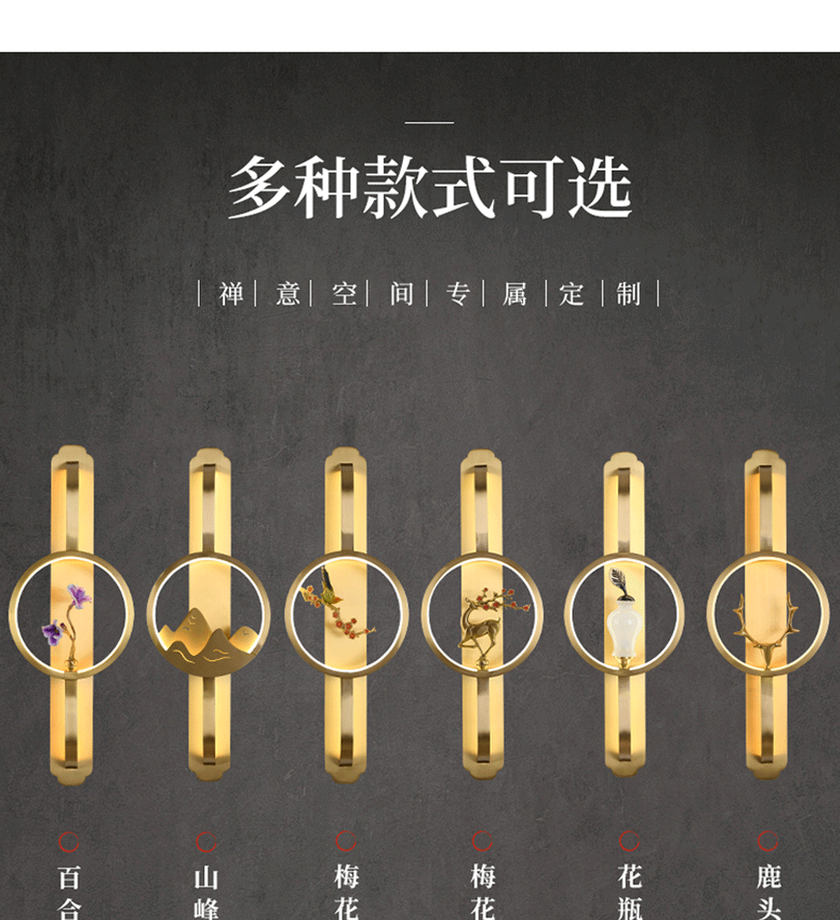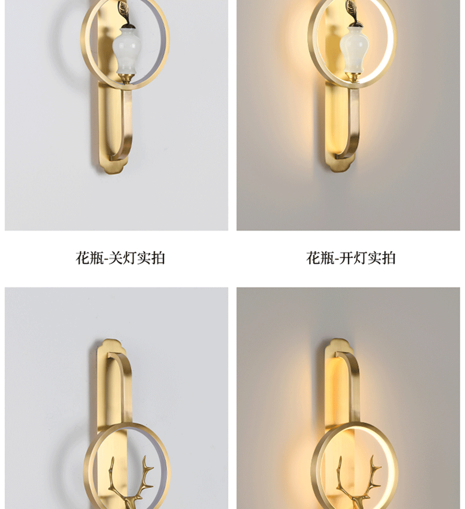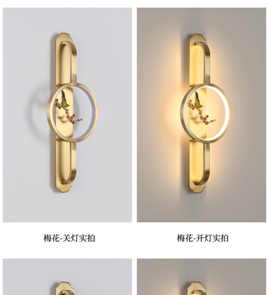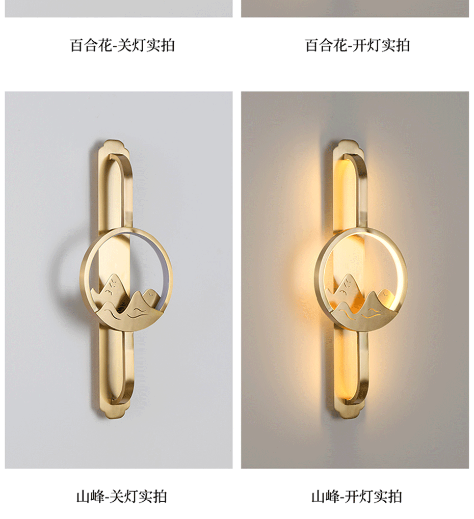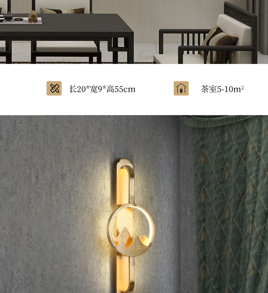 新中式客厅壁灯中国风禅意过道背景墙全铜卧室床头灯