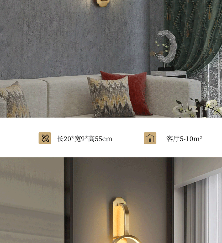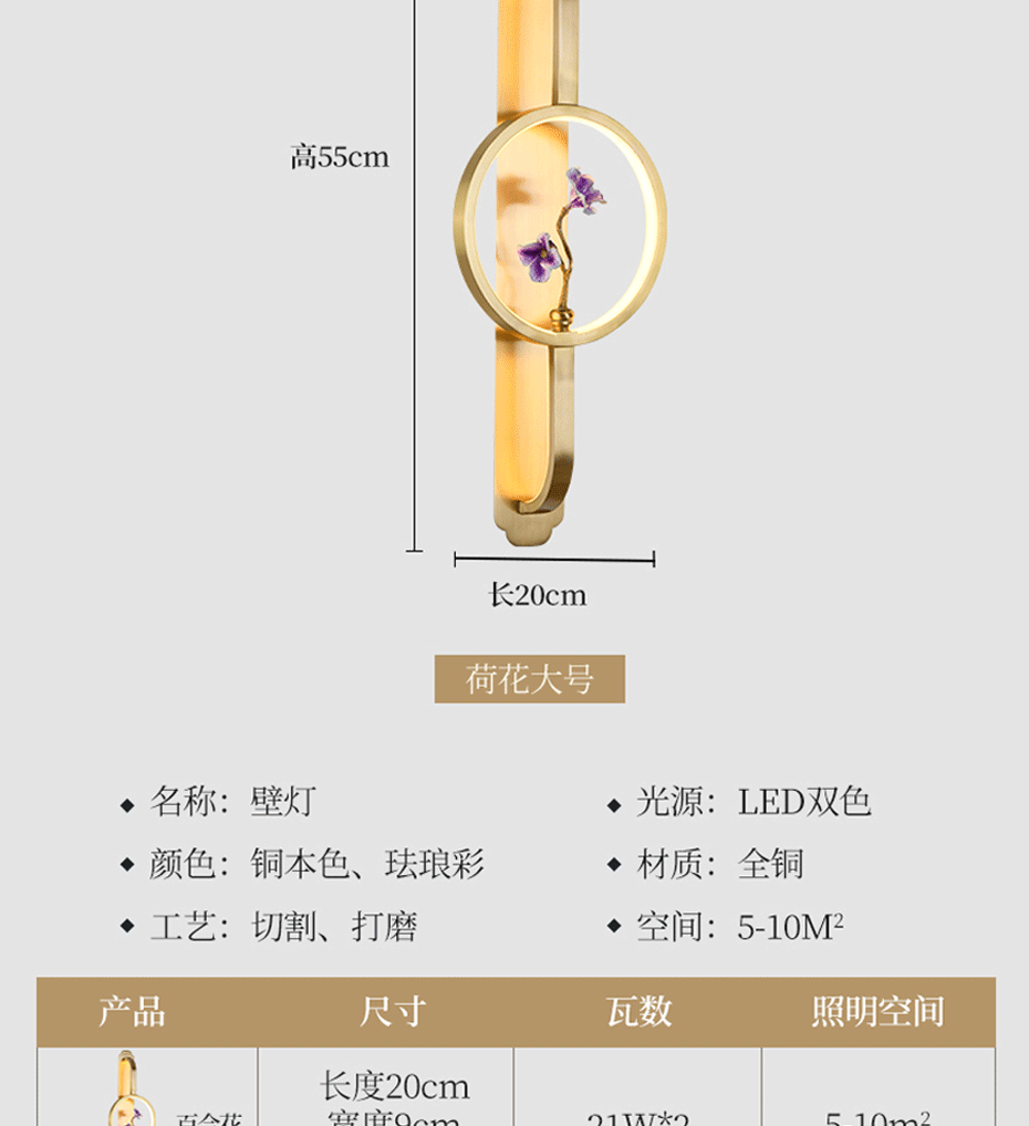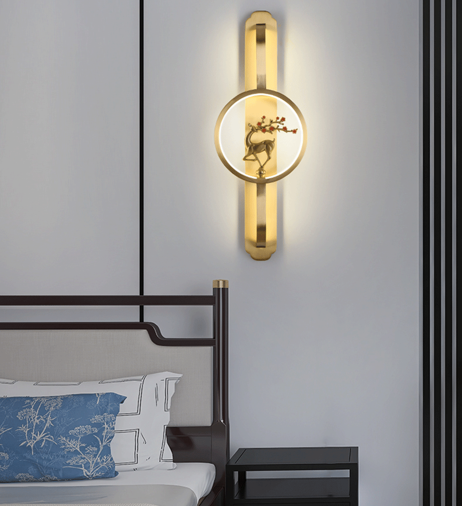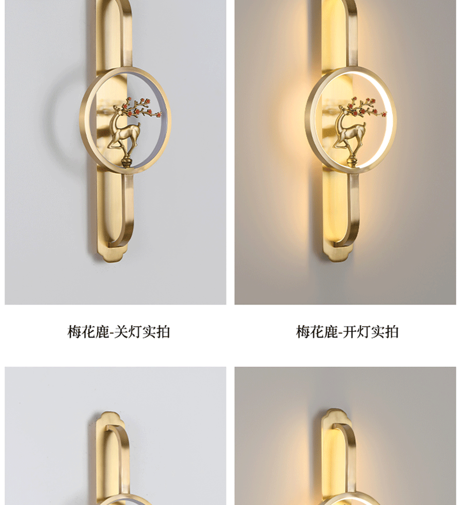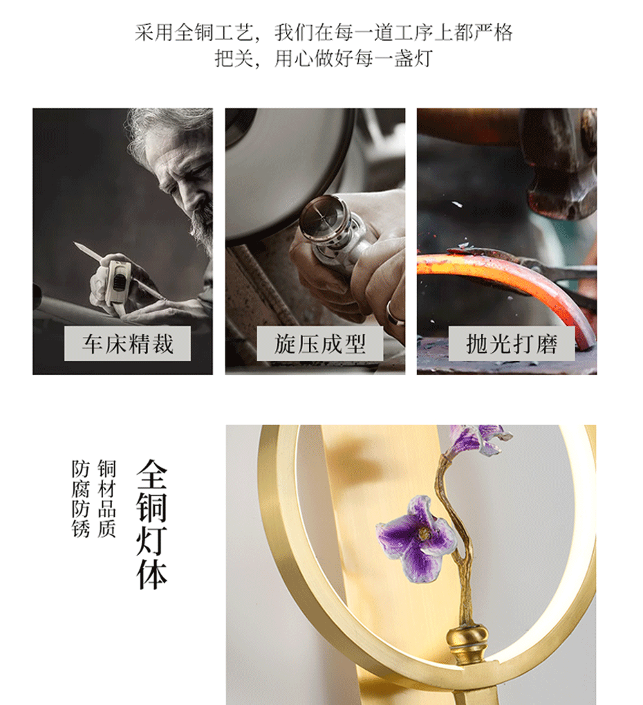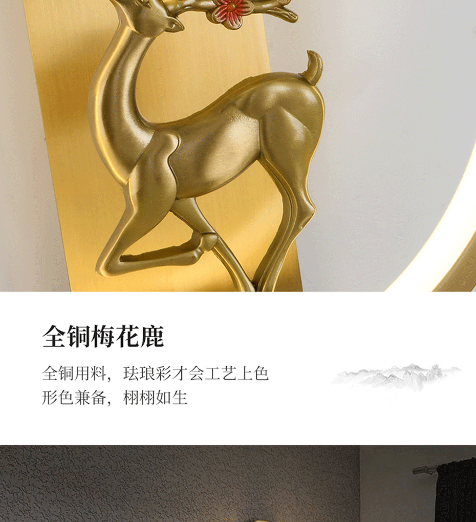 新中式客厅壁灯中国风禅意过道背景墙全铜卧室床头灯