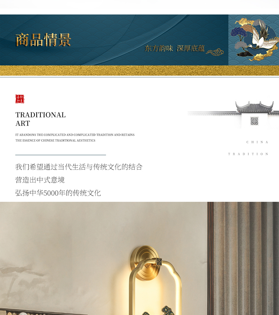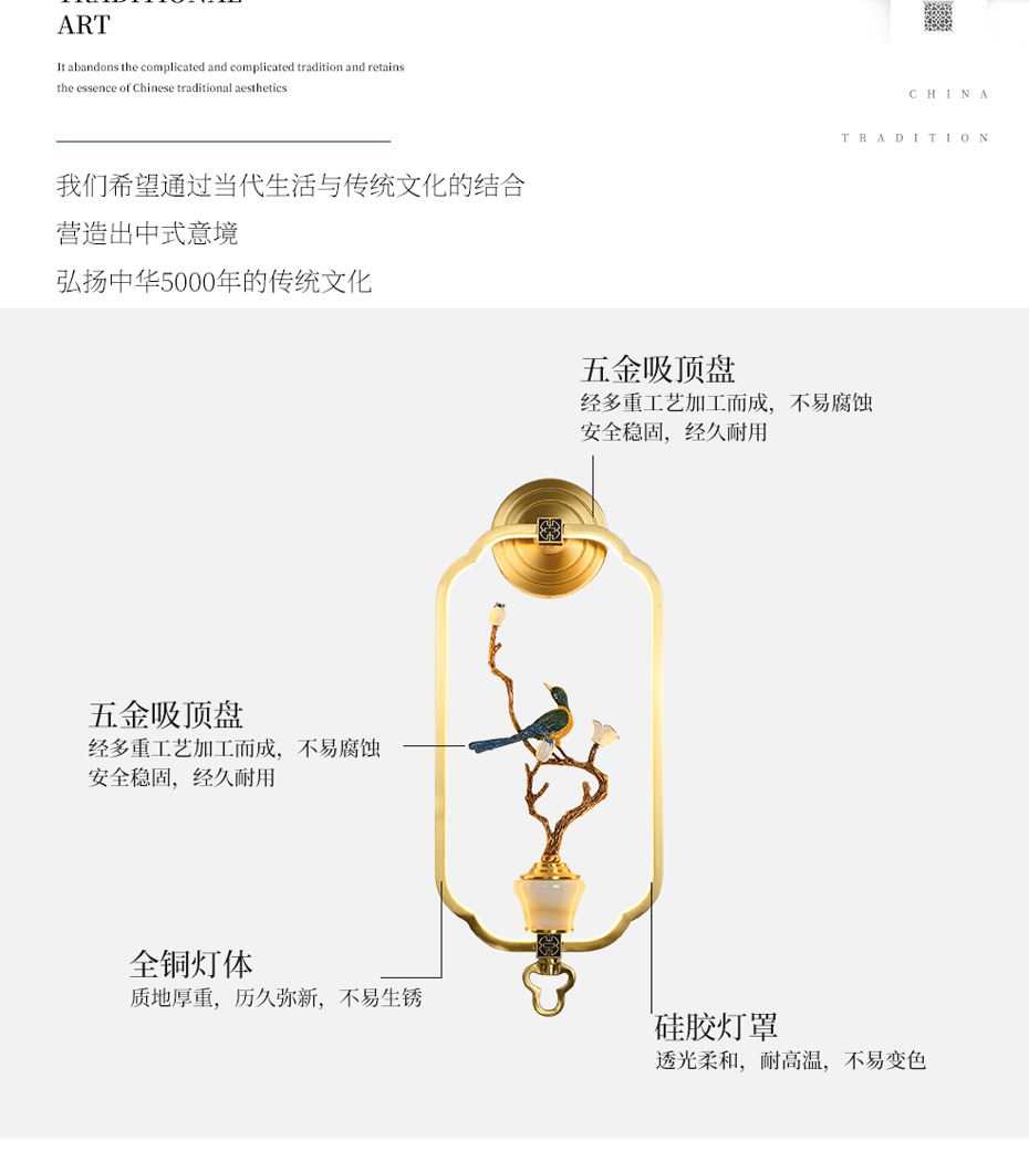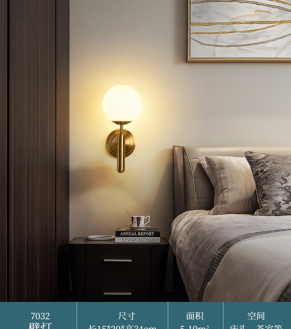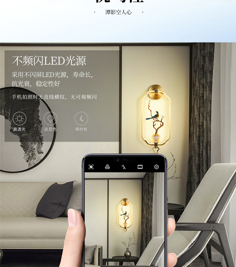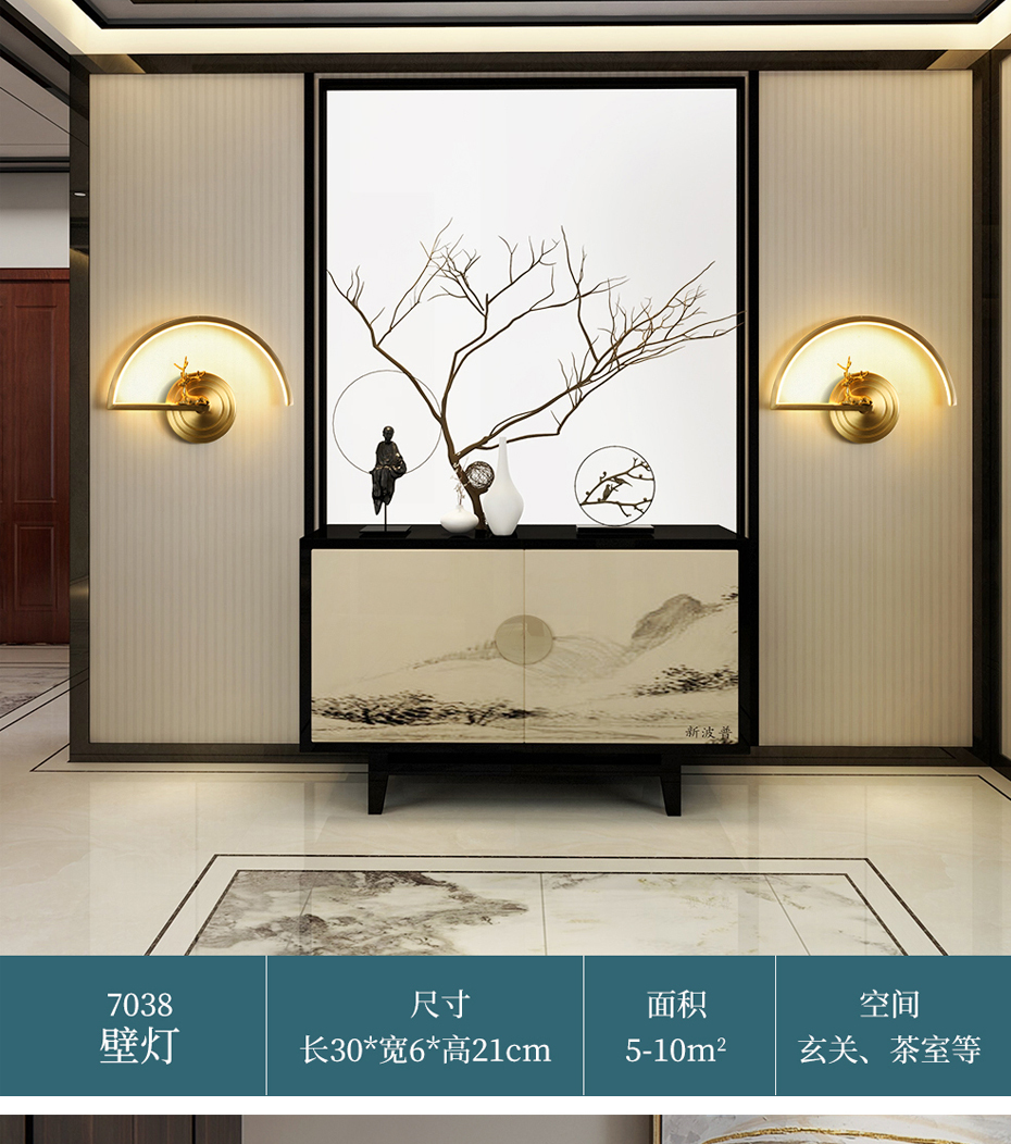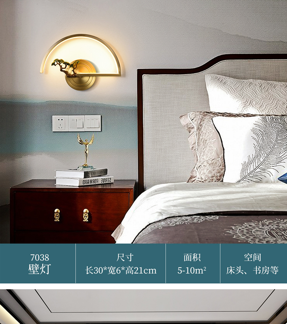 新中式壁灯全铜客厅背景墙壁灯禅意中国风卧室床头灯