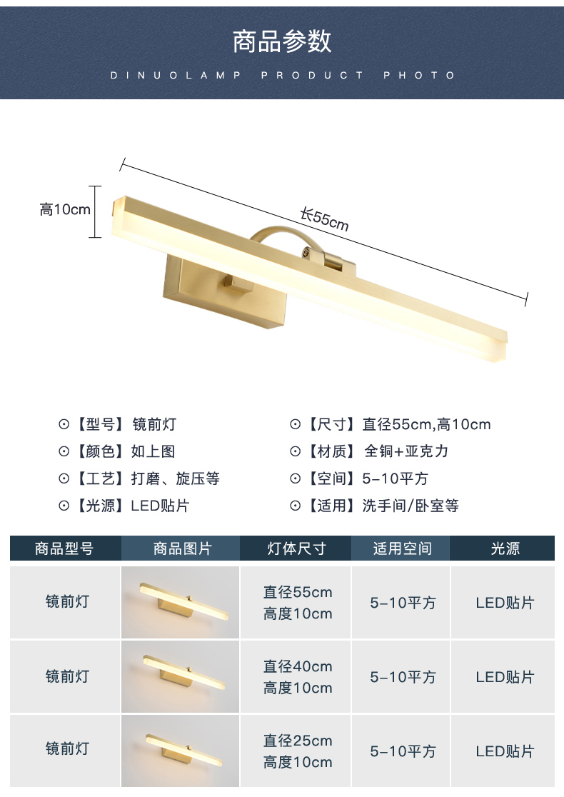 铜 亚克力 卫浴间 美式 镜前灯 JQ3303-23