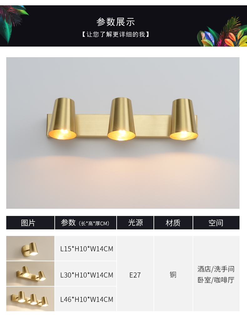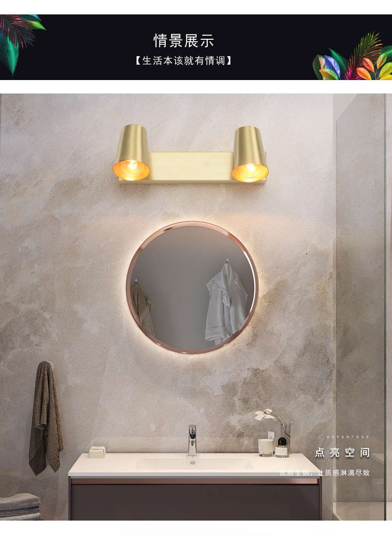卫浴间 镜前灯 全铜镜前灯 DH3307
