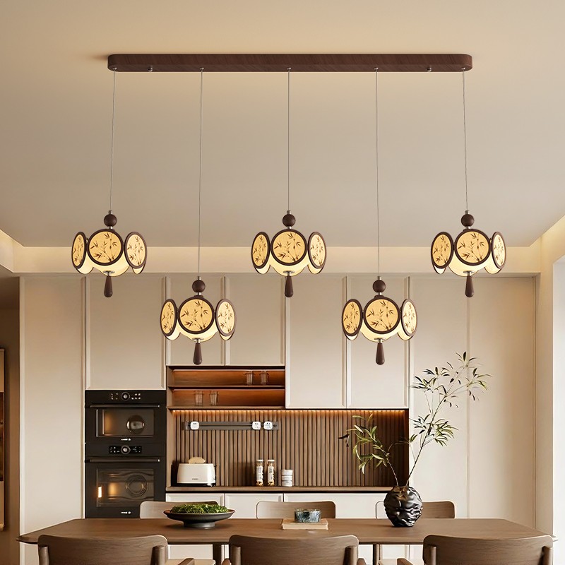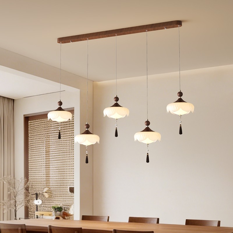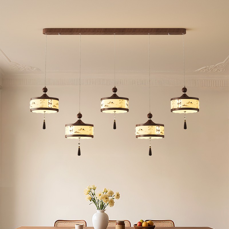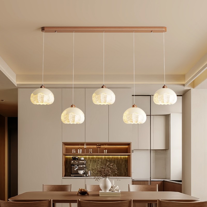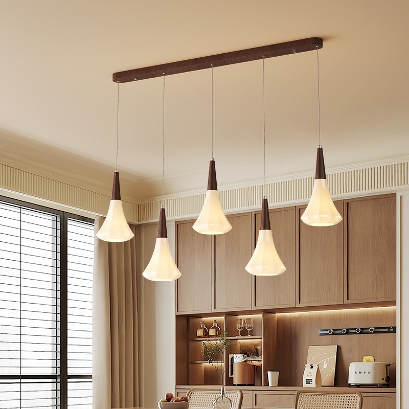 A0453-胡桃木色+奶白色-5头-120X18X120/E27光源60W